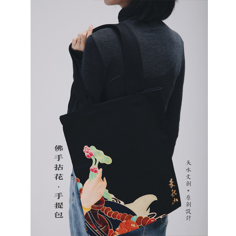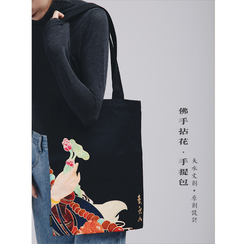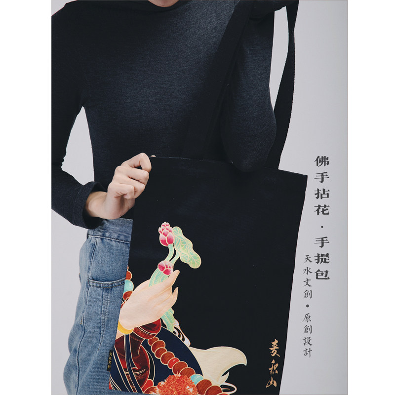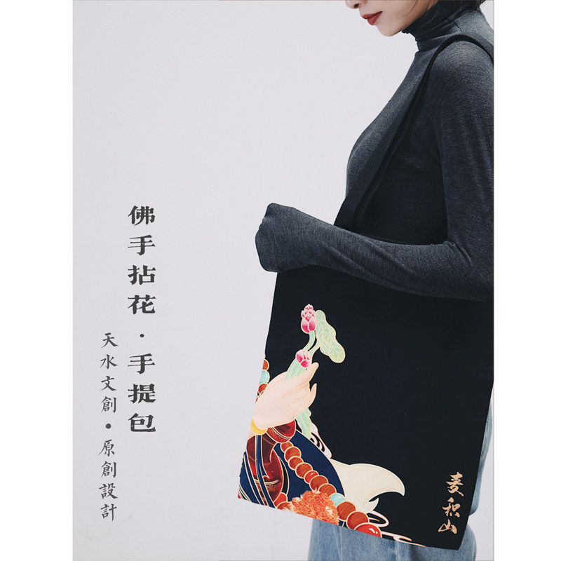 📚 天水文创 原创设计 【佛手拈花】麦积山石窟元素手提帆布袋单肩包