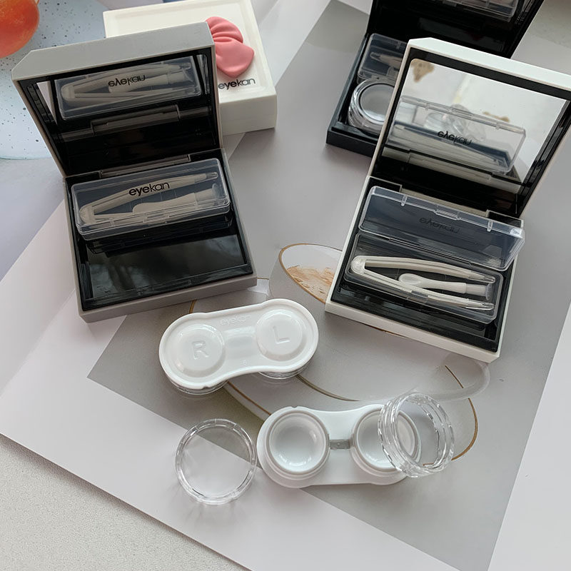 📚 大蝴蝶结隐形眼镜伴侣盒可爱少女心美瞳收纳盒子黑白灰磁吸护理盒