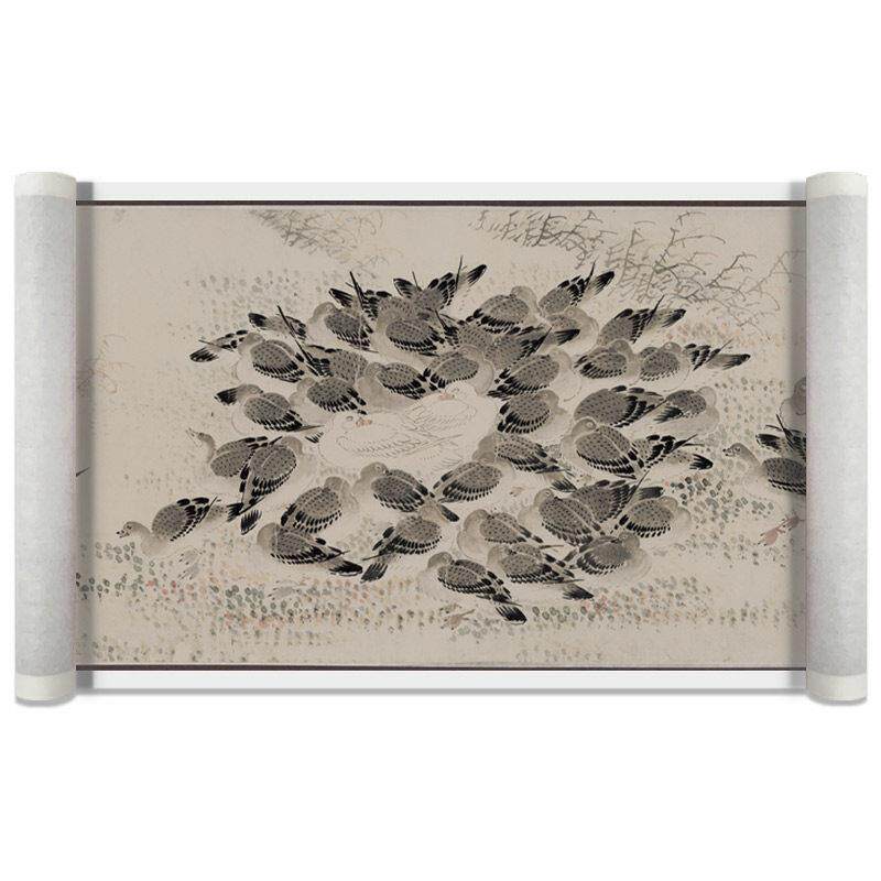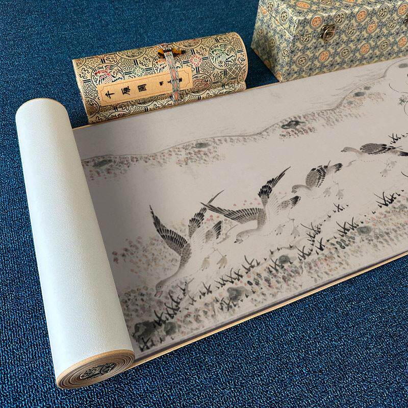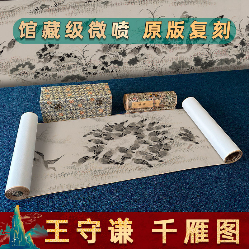 📚 明 王守谦 千雁图纸本名家真迹微喷复刻长卷卷轴装裱装饰画临摹