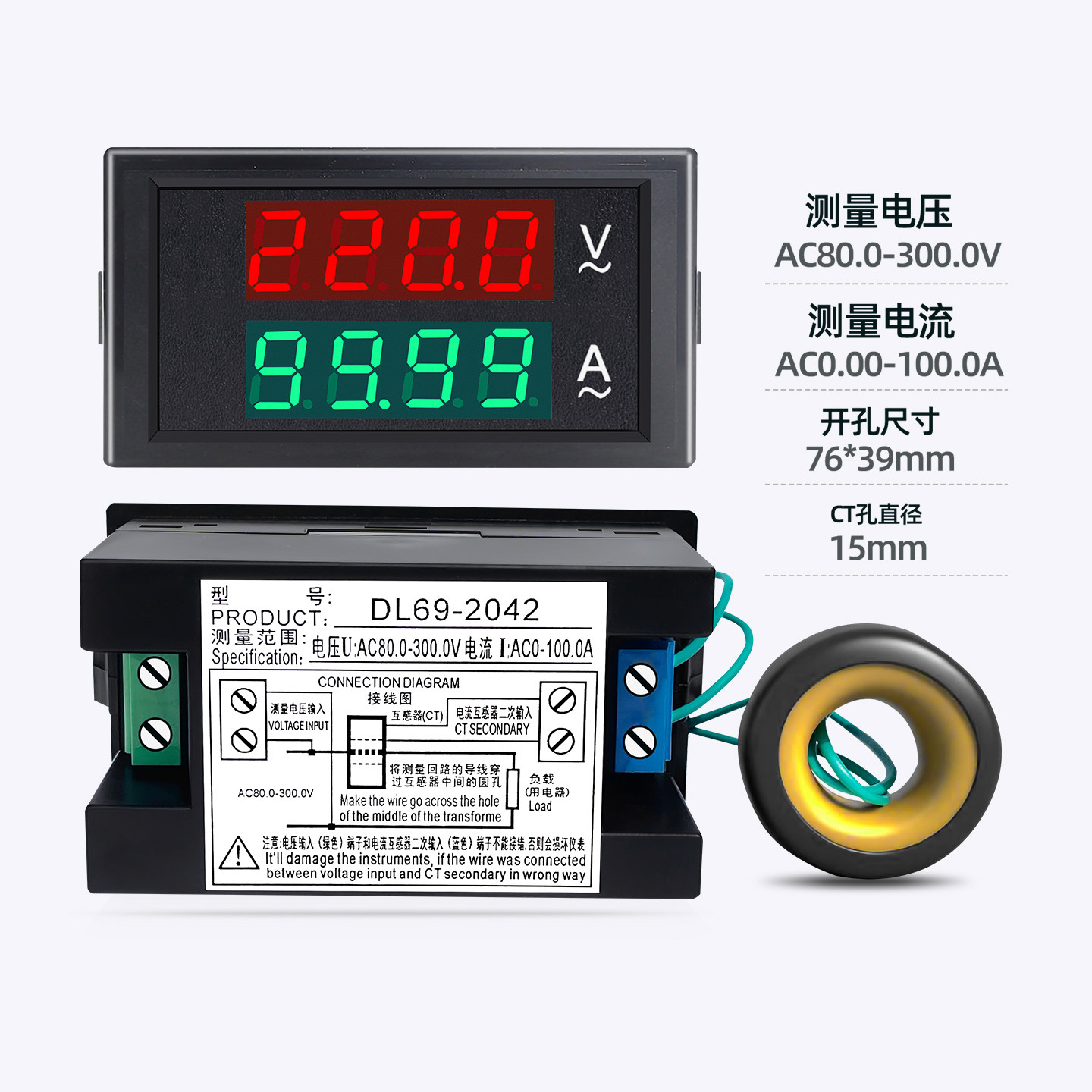 📚 交流数显电压表电流表单相220v三相380v检测仪数字双显DL69-2042