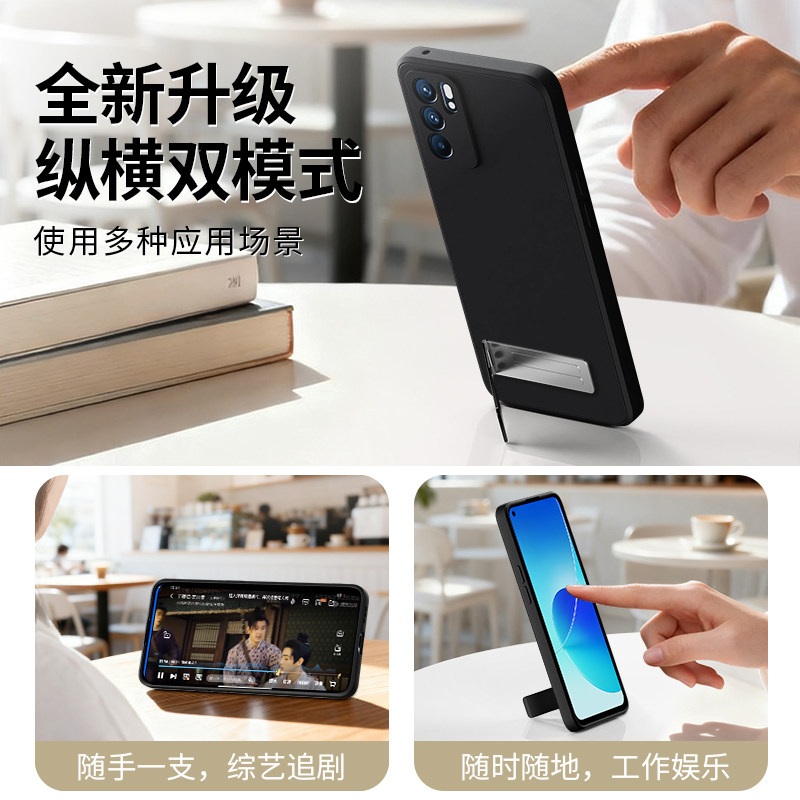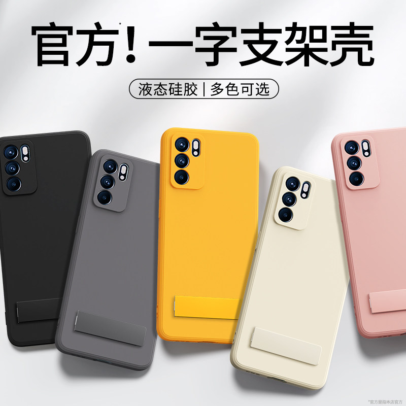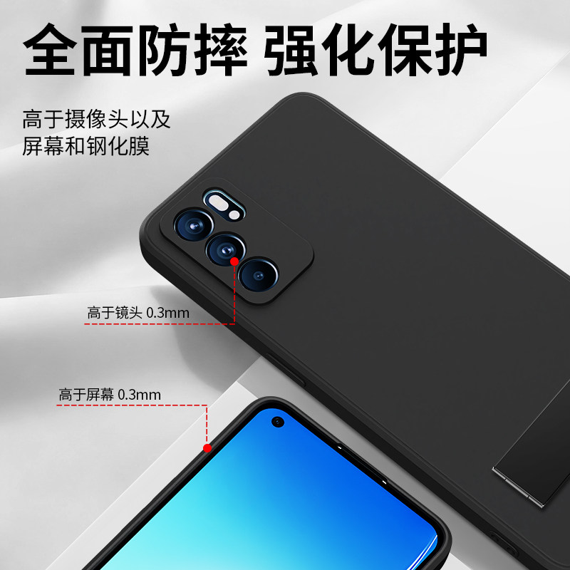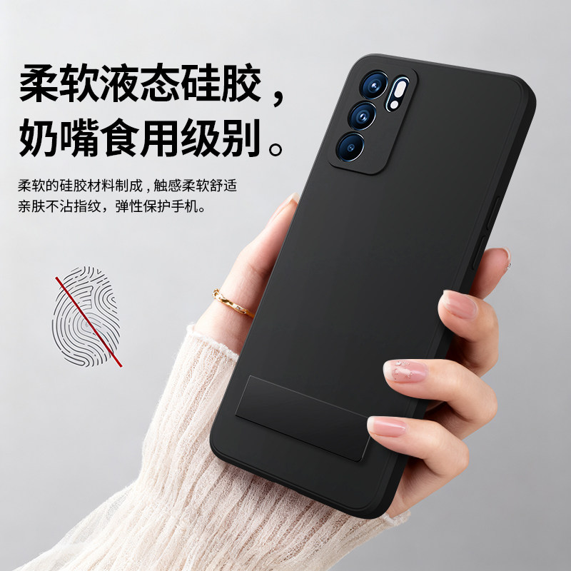 📚 适用oppoReno6手机壳Reno6Pro/6Pro+新款oppo5G液态硅胶带支架黑色保护套十全包防摔0pp0pporeno65G男女加后