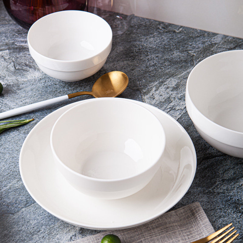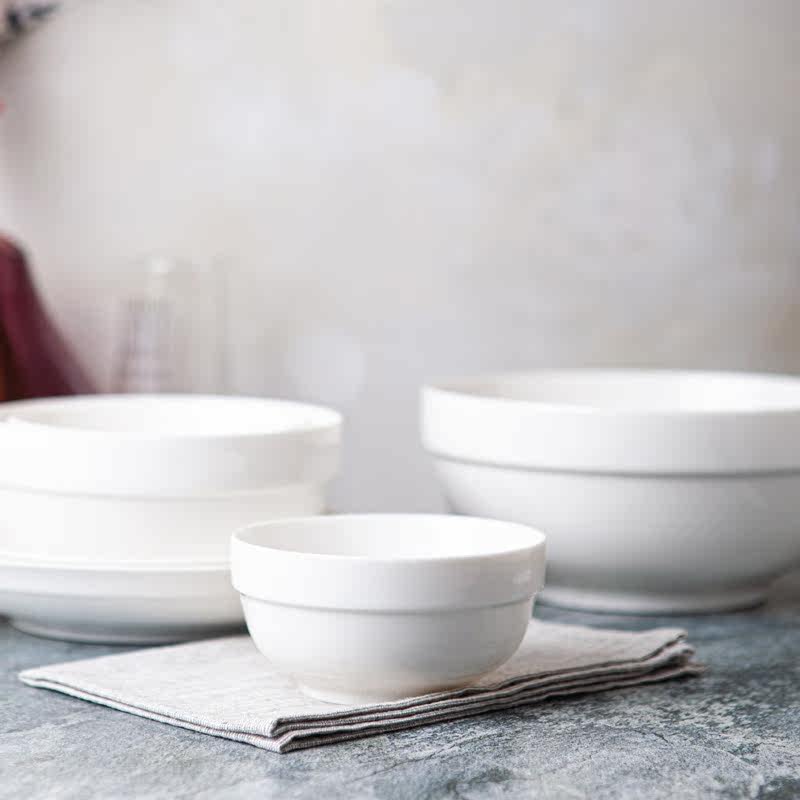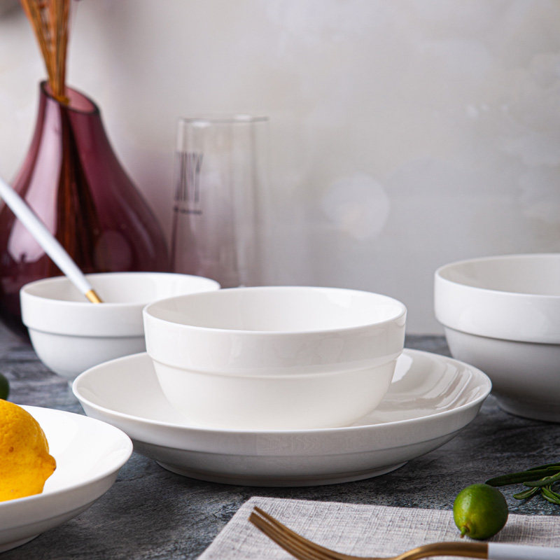 📚 【高品质百搭】顺祥纯白陶瓷面饭碗白色碗盘子护边碗家用商用饭店