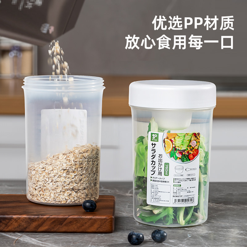 📚 日本家之物语蔬菜沙拉杯酸奶外带碗便携早餐轻食隔夜燕麦杯带盖勺