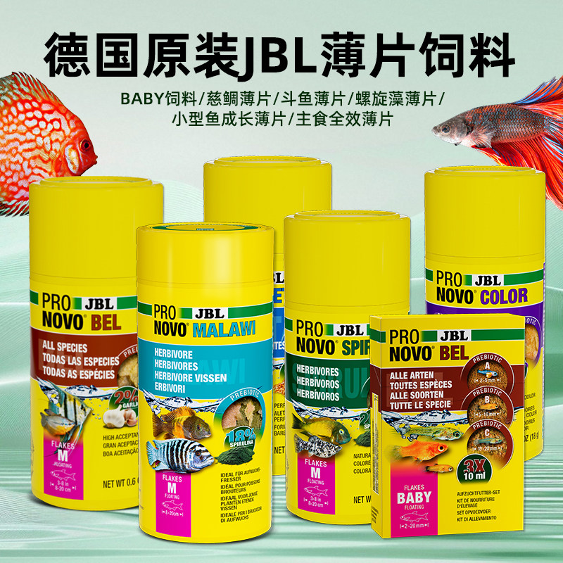 📚 德国JBL珍宝热带鱼神仙鱼孔雀鱼灯鱼螺旋藻大蒜素薄片饲料鱼粮