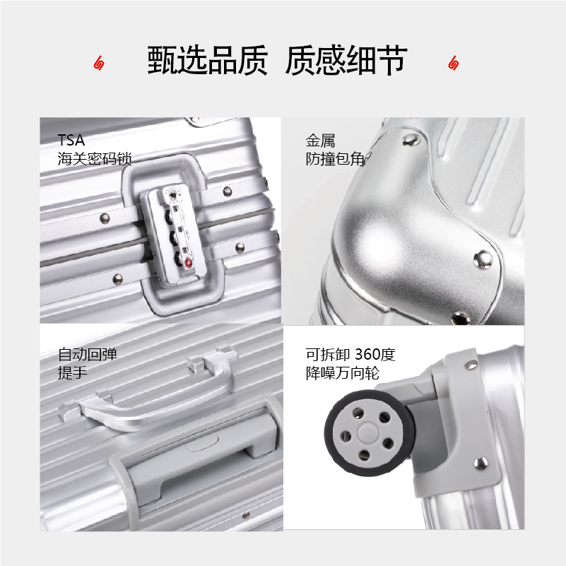 📚 全铝镁合金拉杆箱18/20/22寸男登机长旅行箱女摄影相机金属行李箱