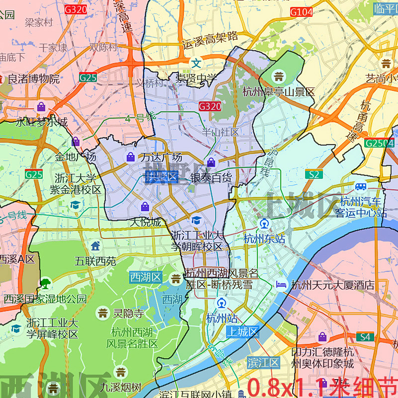 📚 杭州市地图街道可定制浙江省电子版JPG素材简约高清素材图片交通