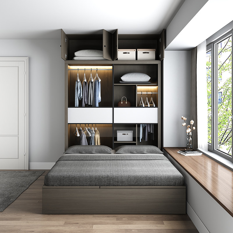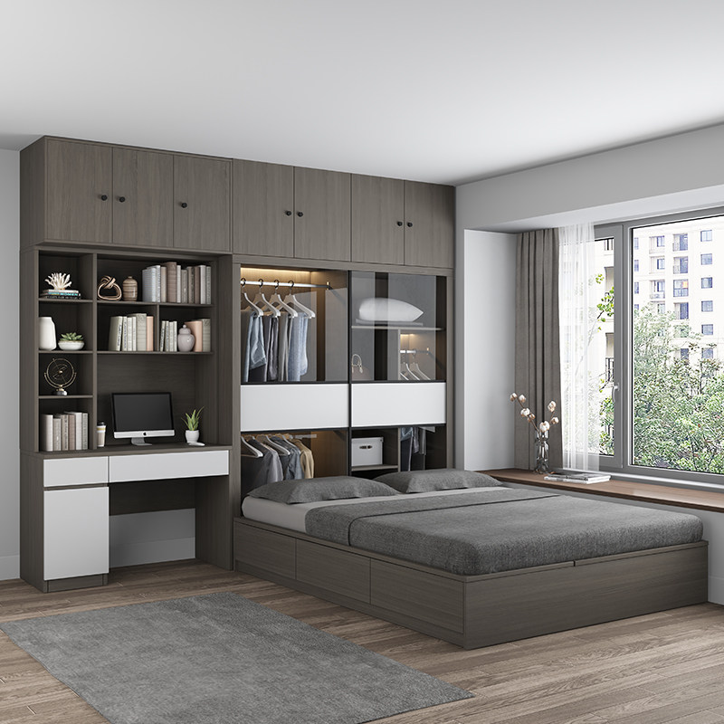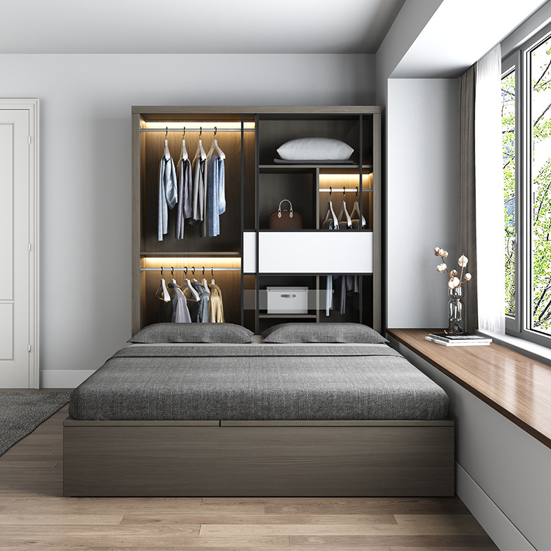 📚 衣柜床一体榻榻米儿童房北欧双人床1.5米小户型1.8米无床头储物床