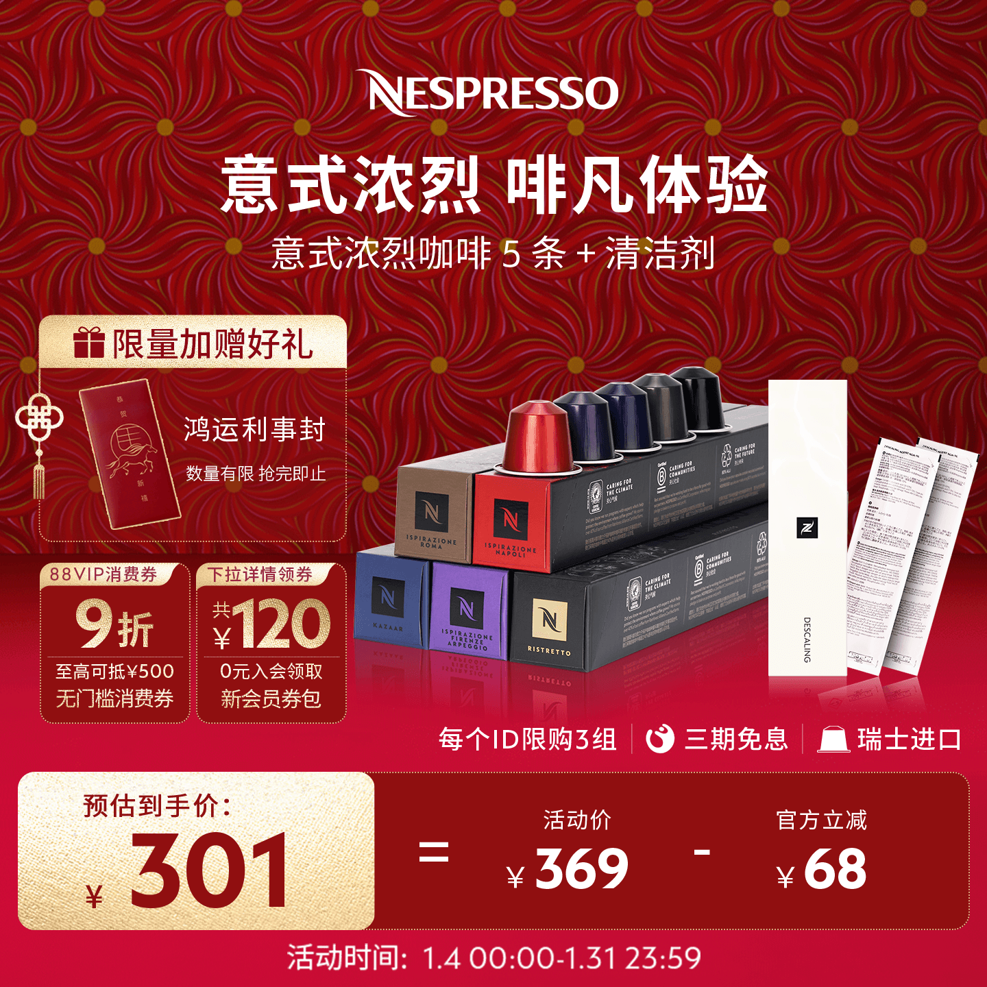77¥ MF937 iBFyUkW2nZR¥ https://m.tb.cn/h.7u1q8X4 NESPRESSO奈斯派索胶囊咖啡意式浓烈套装50颗咖啡胶囊含清洁剂 --------------------- 【原售价】369元 【现售价】369元。