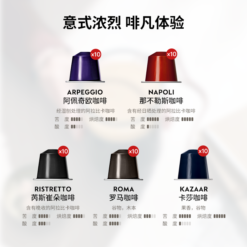 📚 NESPRESSO奈斯派索胶囊咖啡意式浓烈套装50颗咖啡胶囊含清洁剂