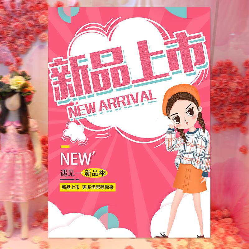 📚 童装店上新海报新款清仓装饰墙贴纸画促销活动广告展架牌设计定制