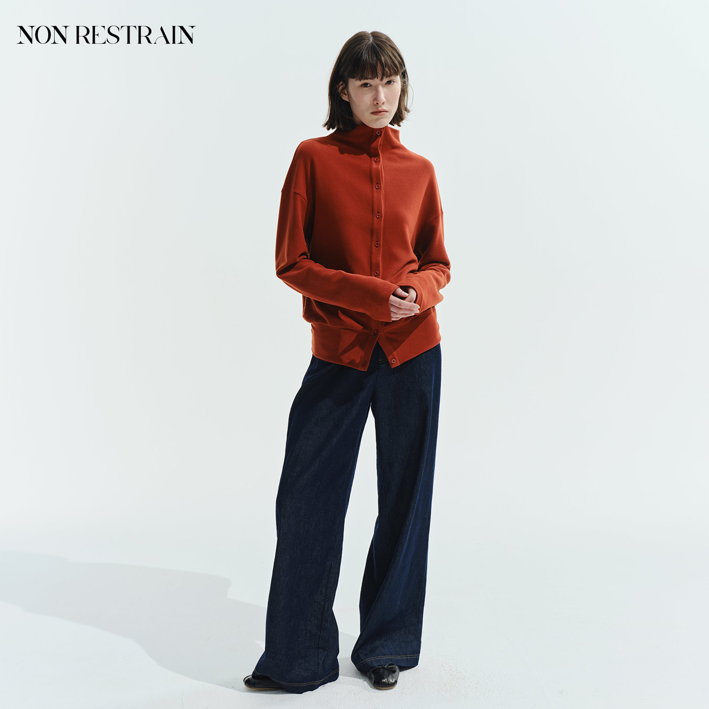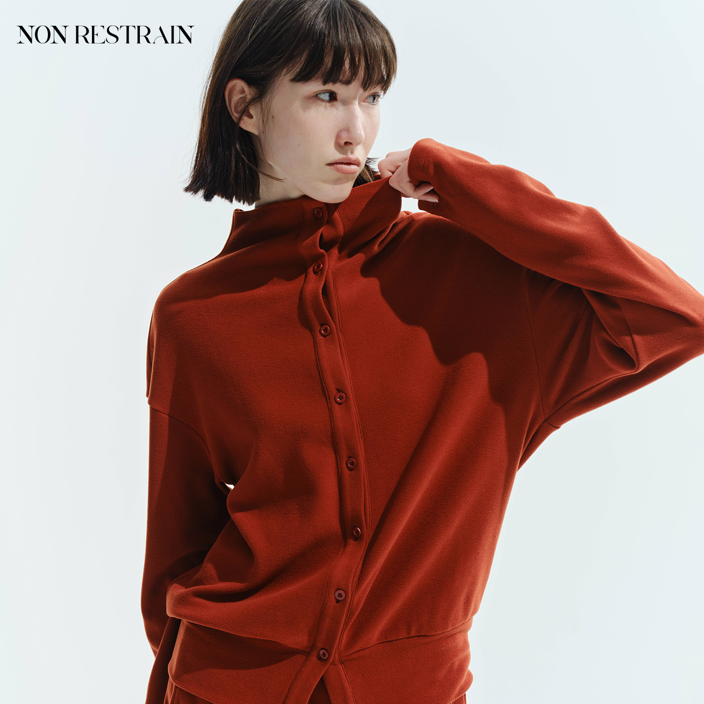 📚 NON RESTRAIN红色立领绒感开衫上衣女假两件直筒开叉半身长裙套装