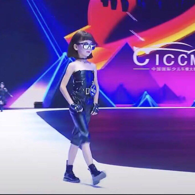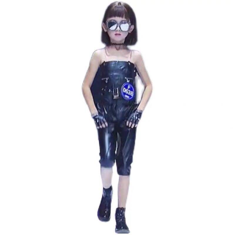 📚 儿童班服潮服女童酷炫机车服装童模走秀黑色皮衣V皮裤时装演出服
