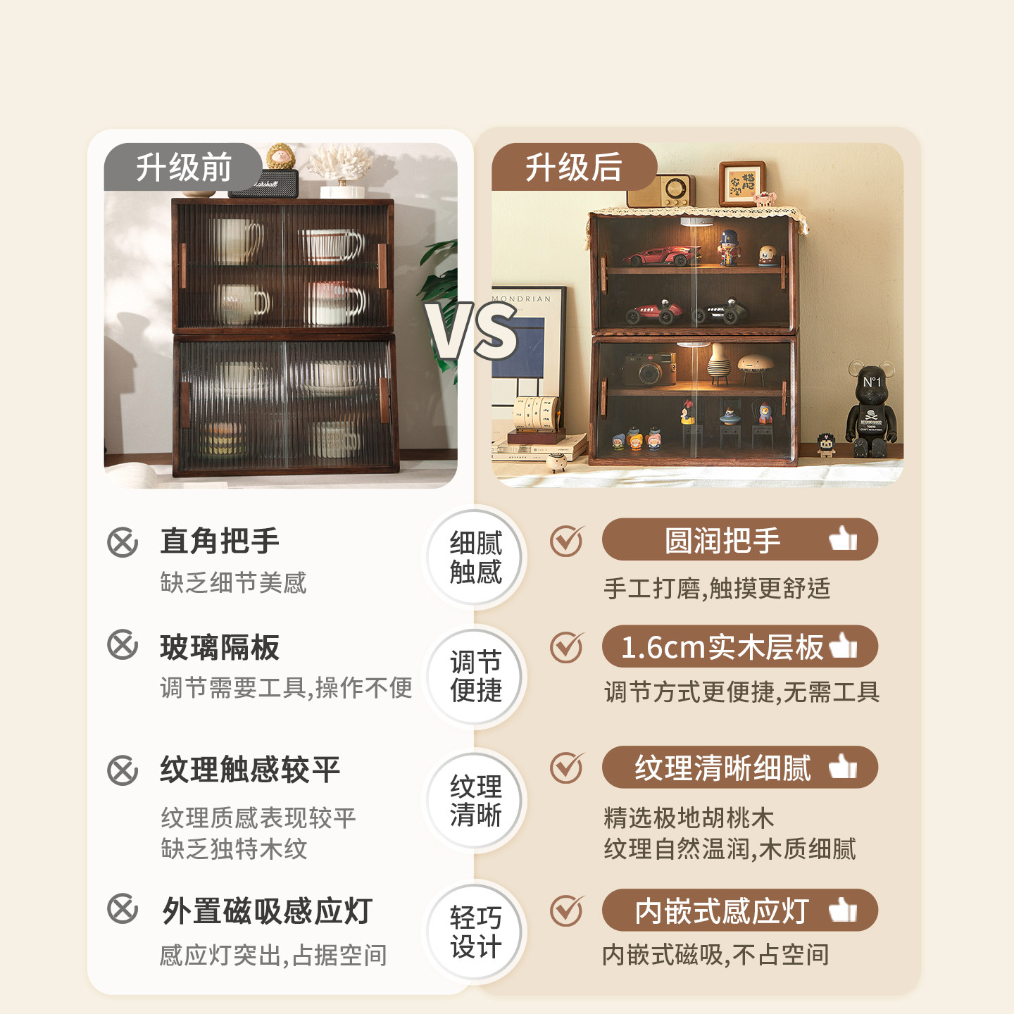 📚 实木收纳柜防尘桌上桌面水杯茶具咖啡架子客厅餐边储物置物架木质