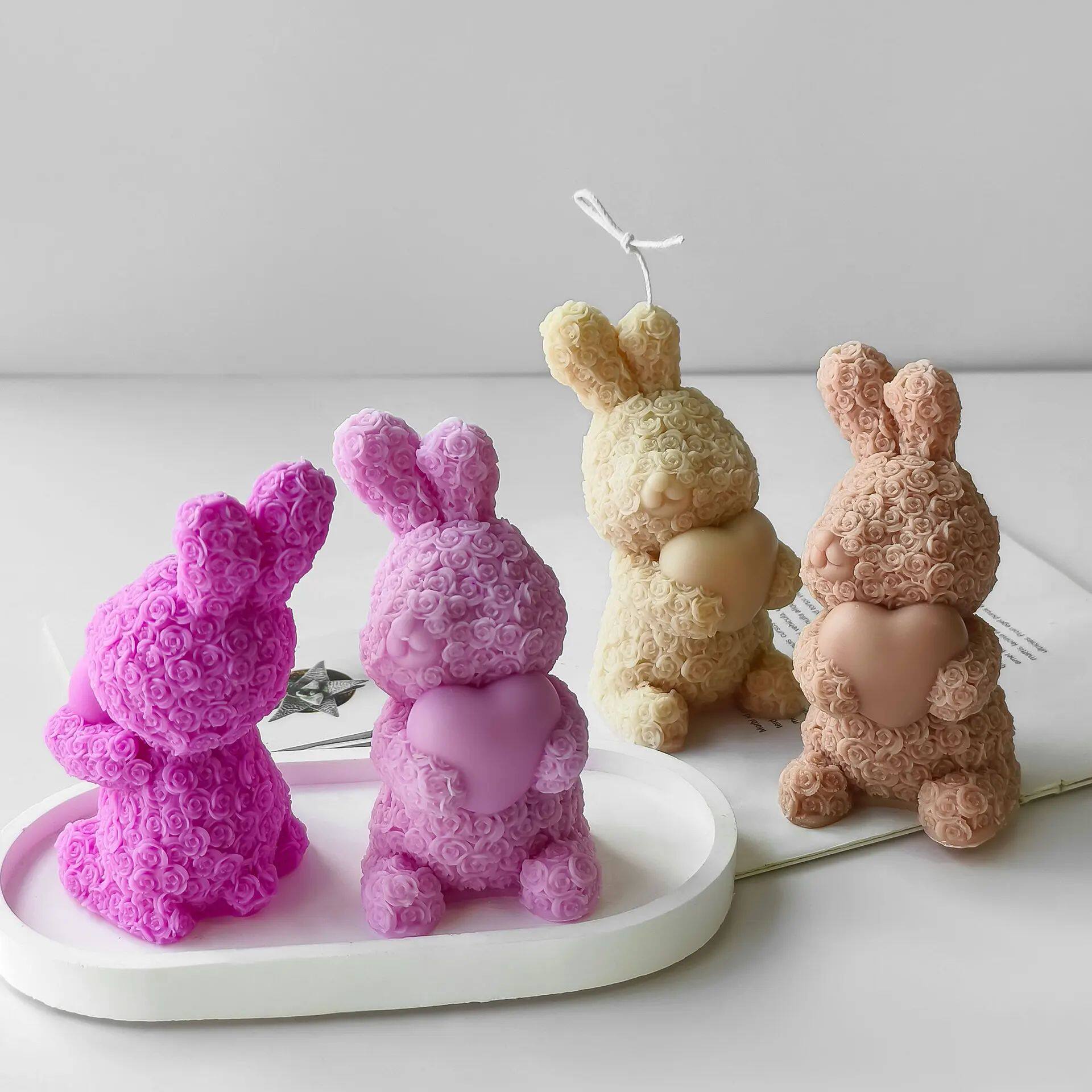 📚 Valentine's Day Love Rose Rabbit Candle Silicone Molds DIY C