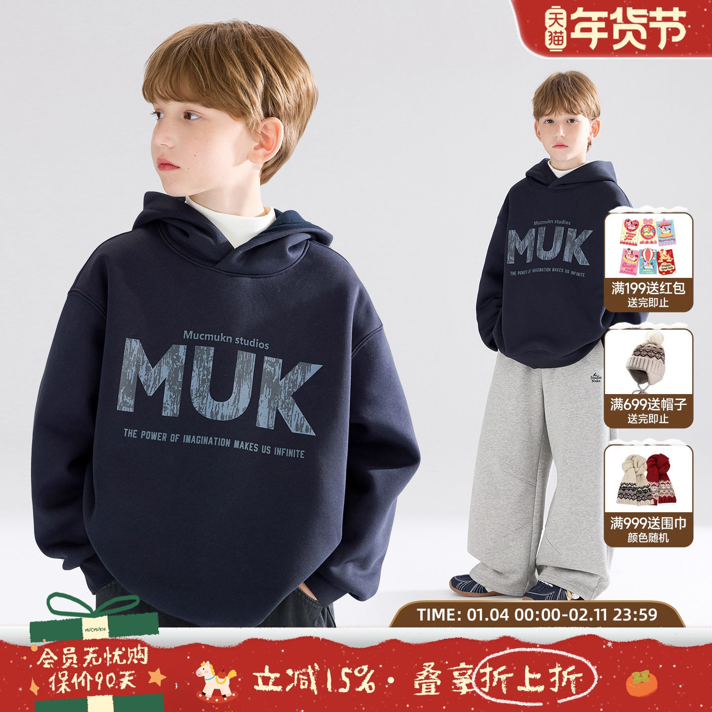 📚 MUCMUKN【暖绒自发热】原创潮酷字母印花抗菌连帽加绒卫衣男童冬