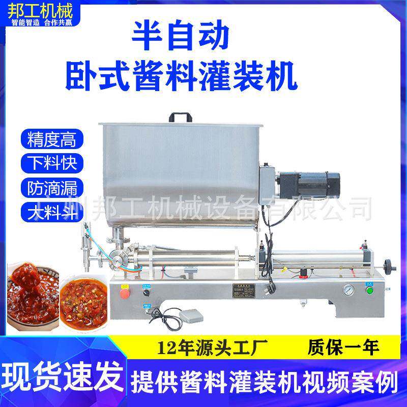 📚 邦工半自动辣椒酱灌装机火锅底料百香果番茄酱卧式定量灌装机