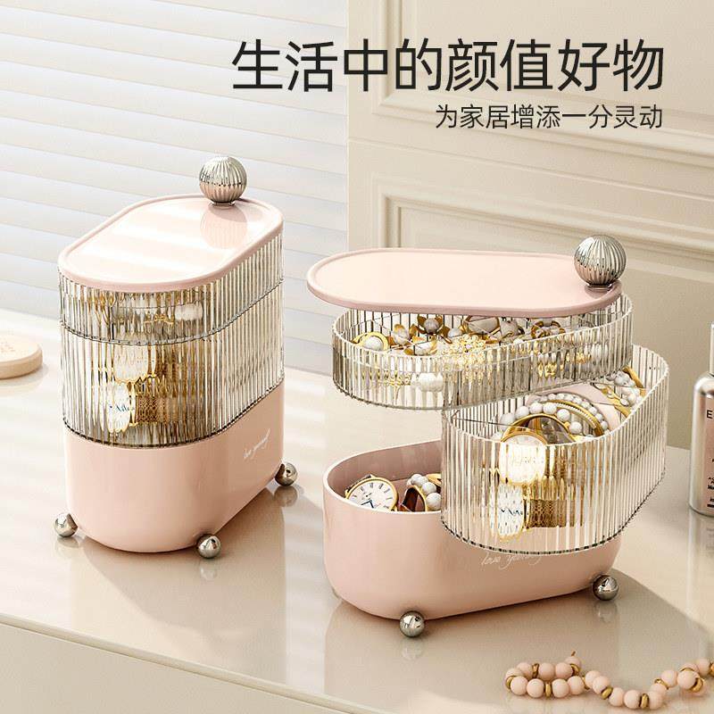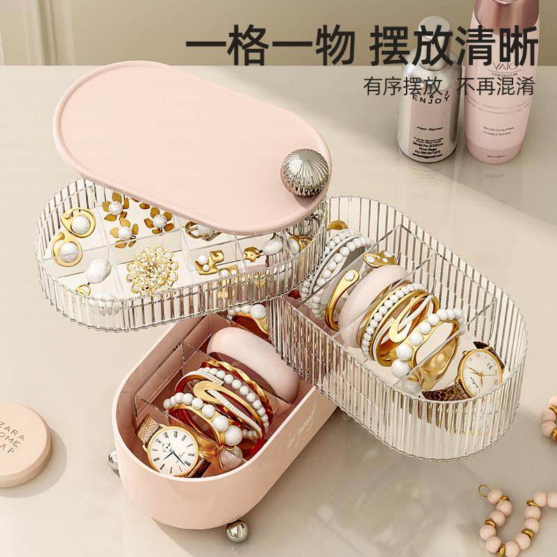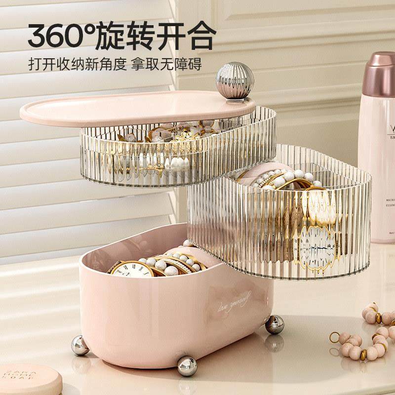 🎁新品种草记:桌面收纳盒旋转分层带分格发圈化妆品数据线,防尘儿童发饰储