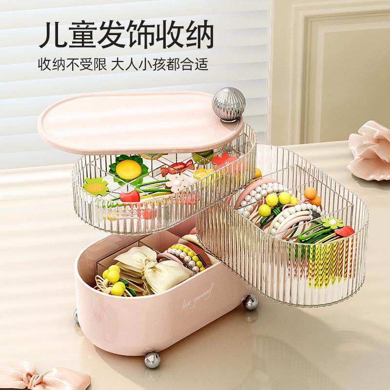 #桌面收纳盒 #旋转分层 #带分格发圈 #化妆品数据线 #防尘儿童发饰储 #好物分享