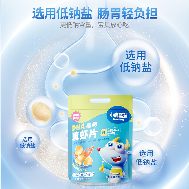 📚 小鹿蓝蓝DHA高钙真虾片鲜香酥脆儿童解馋健康零食非油炸袋装120g