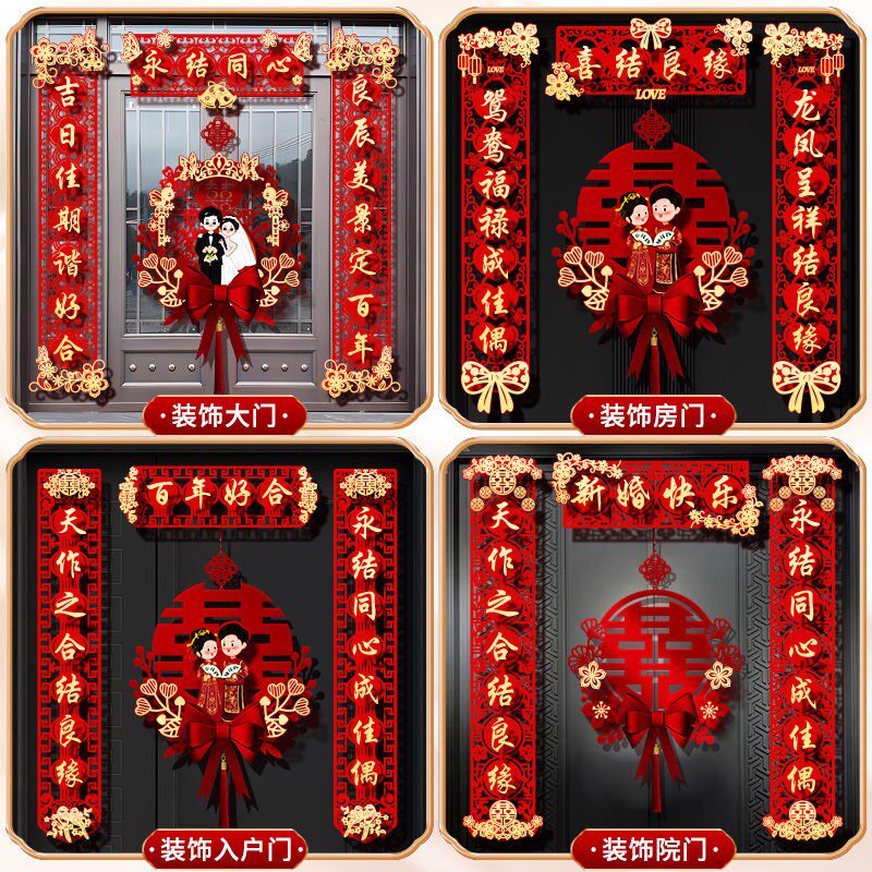 📚 结婚对联男方小区新婚礼婚房女方出嫁入户门喜联全套婚房布单元门