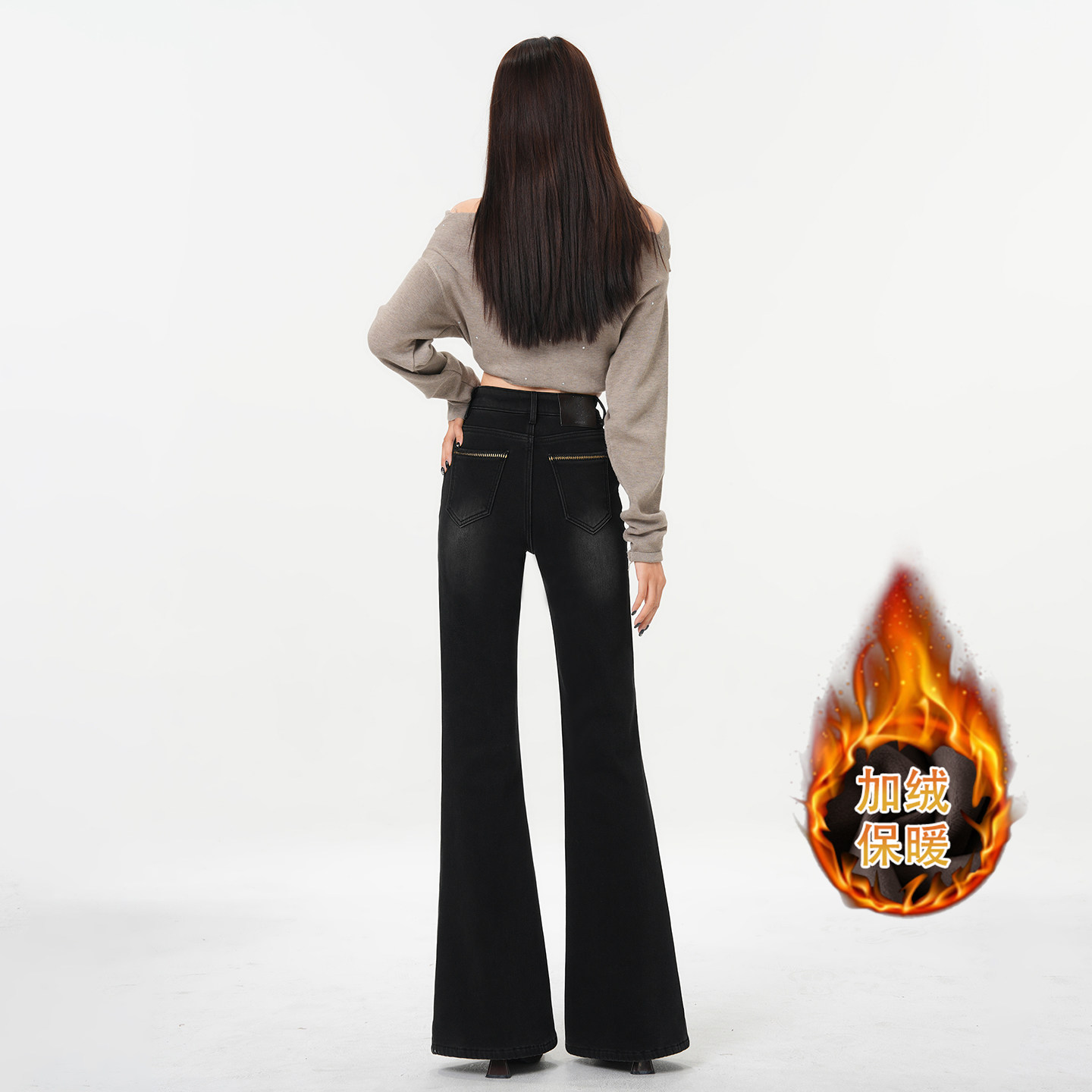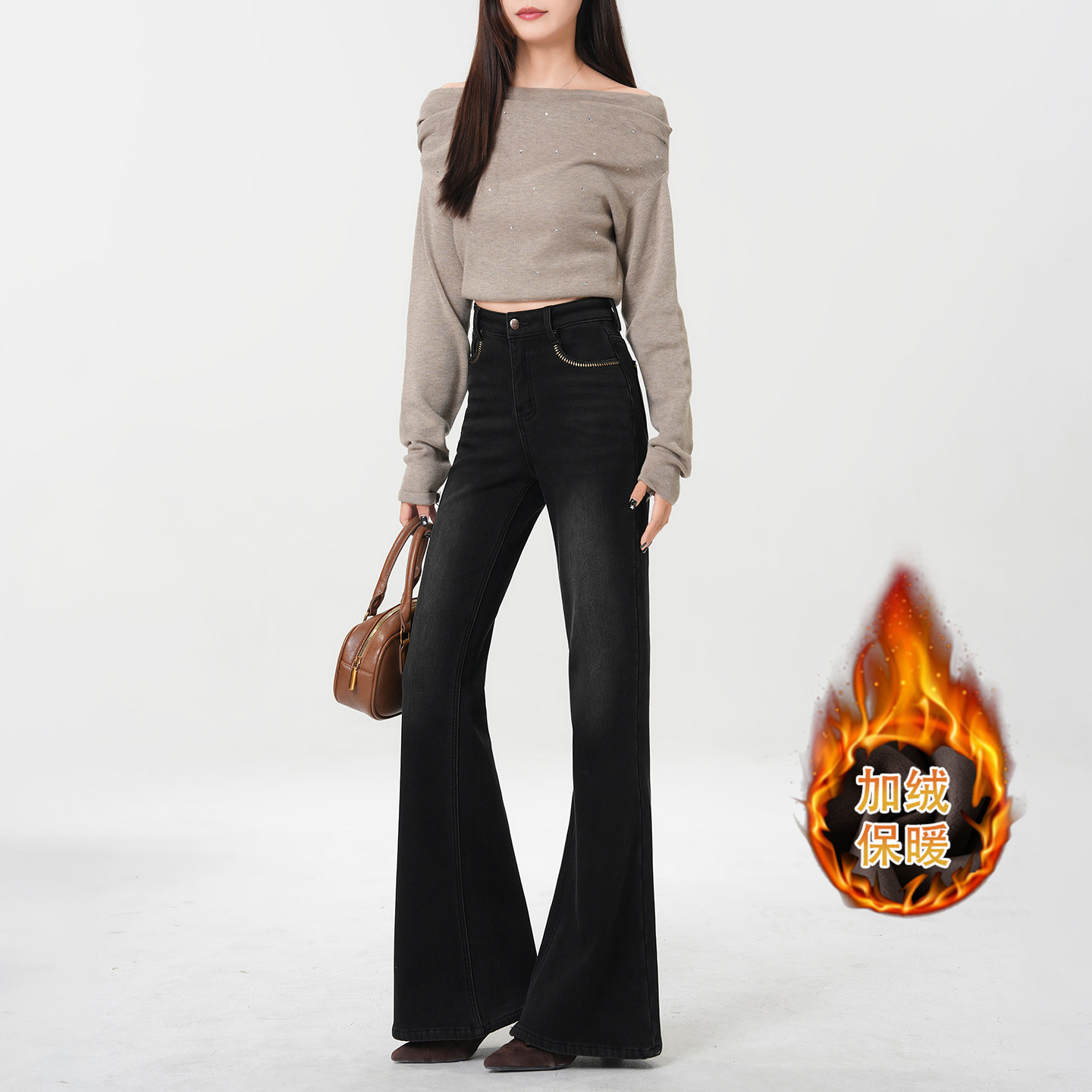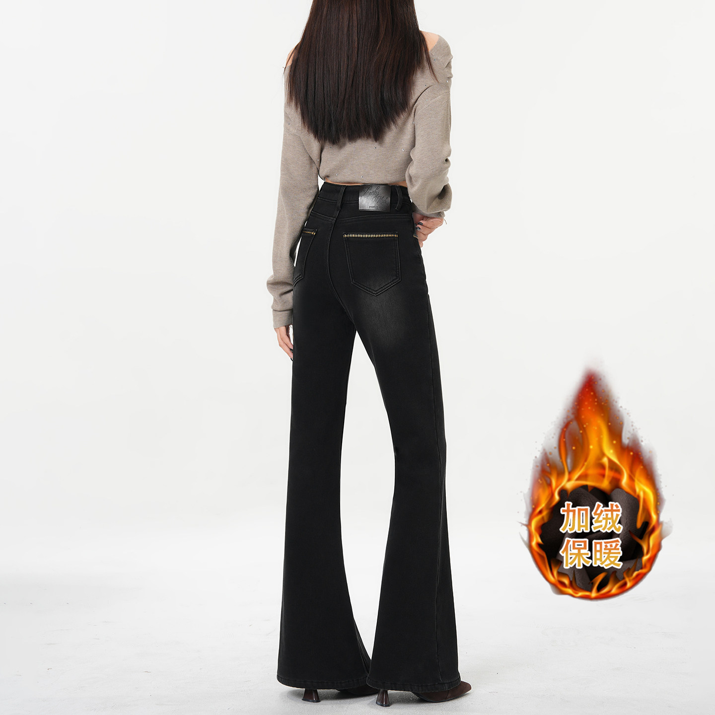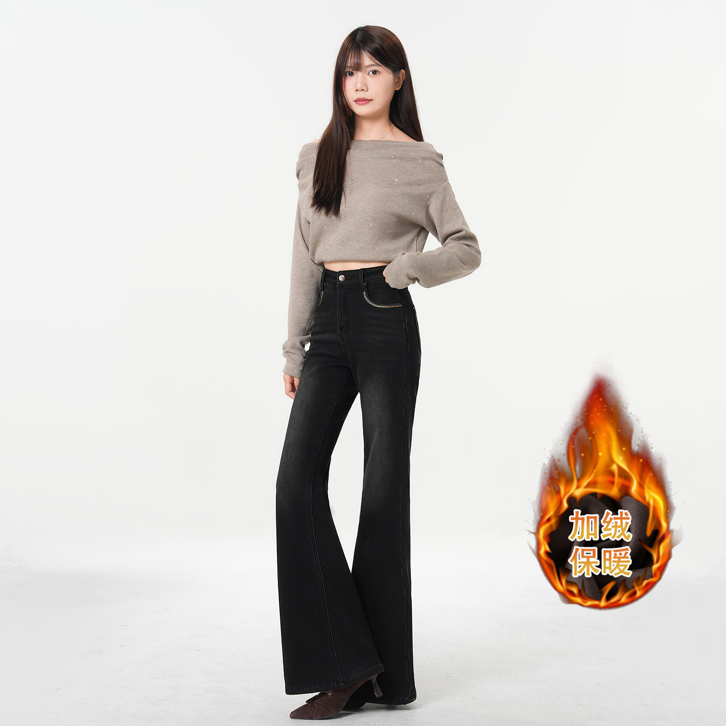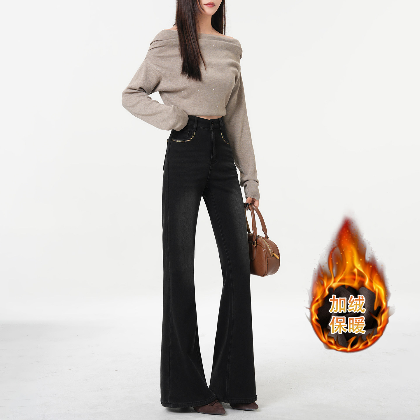 📚 若纤 Pretty Silhouette焦糖夜色加绒微喇牛仔裤女修身高腰喇叭裤