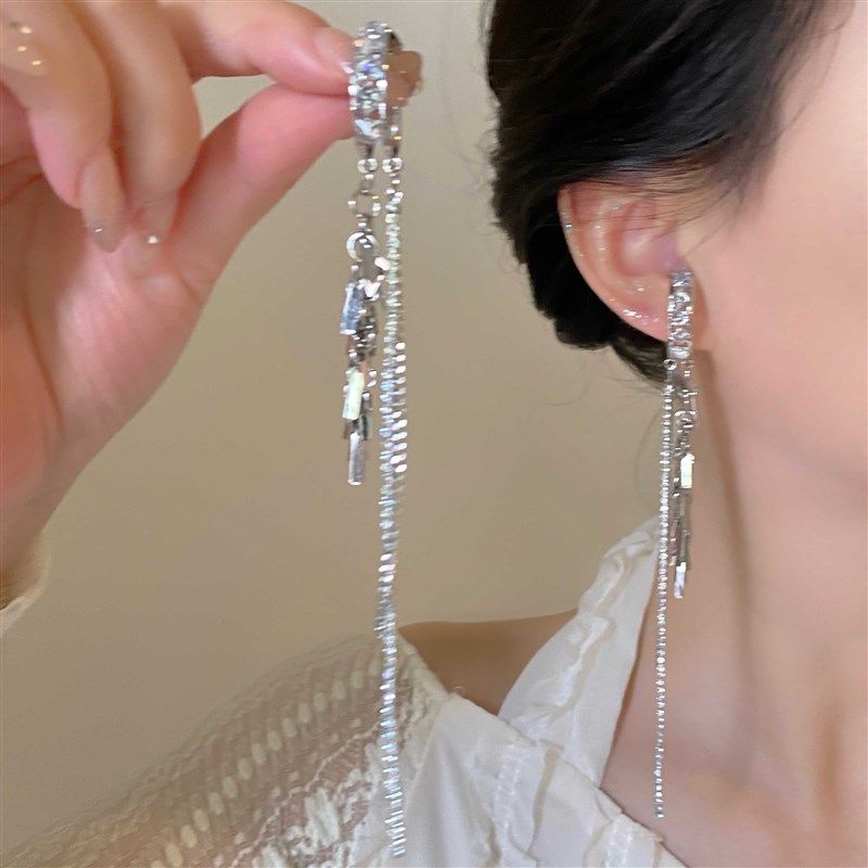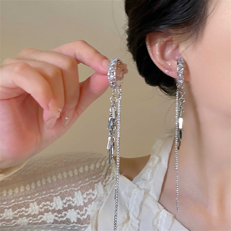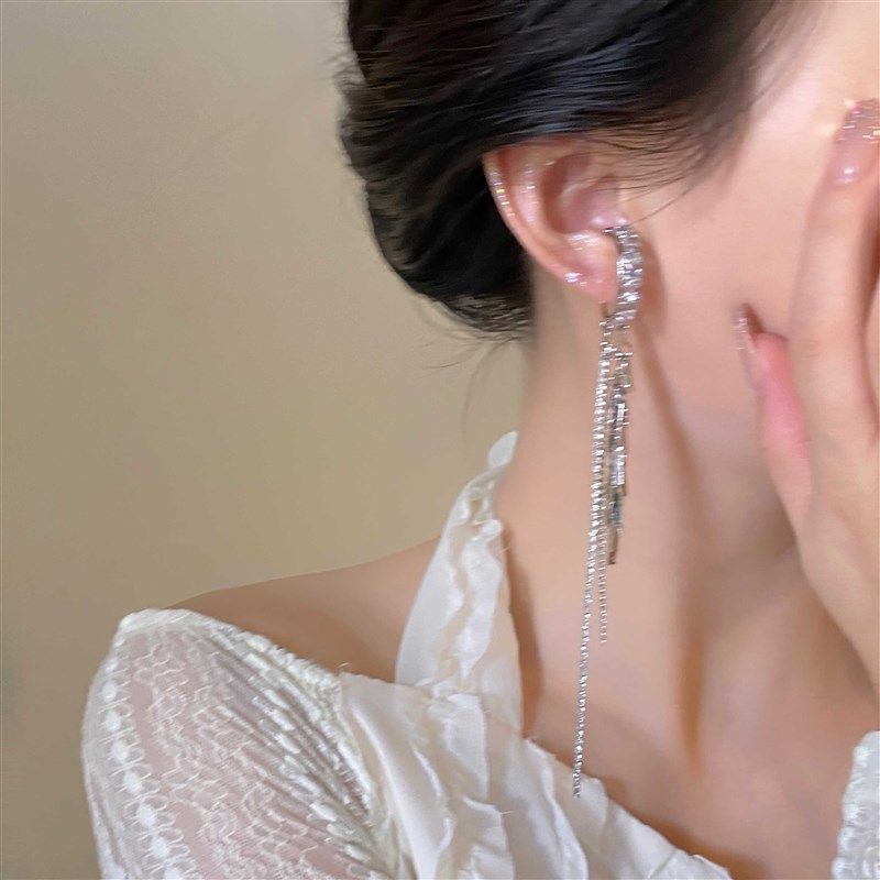 📚 「月神降临」爆闪长款流苏无耳洞耳骨夹耳夹式高级感冷淡风耳饰女