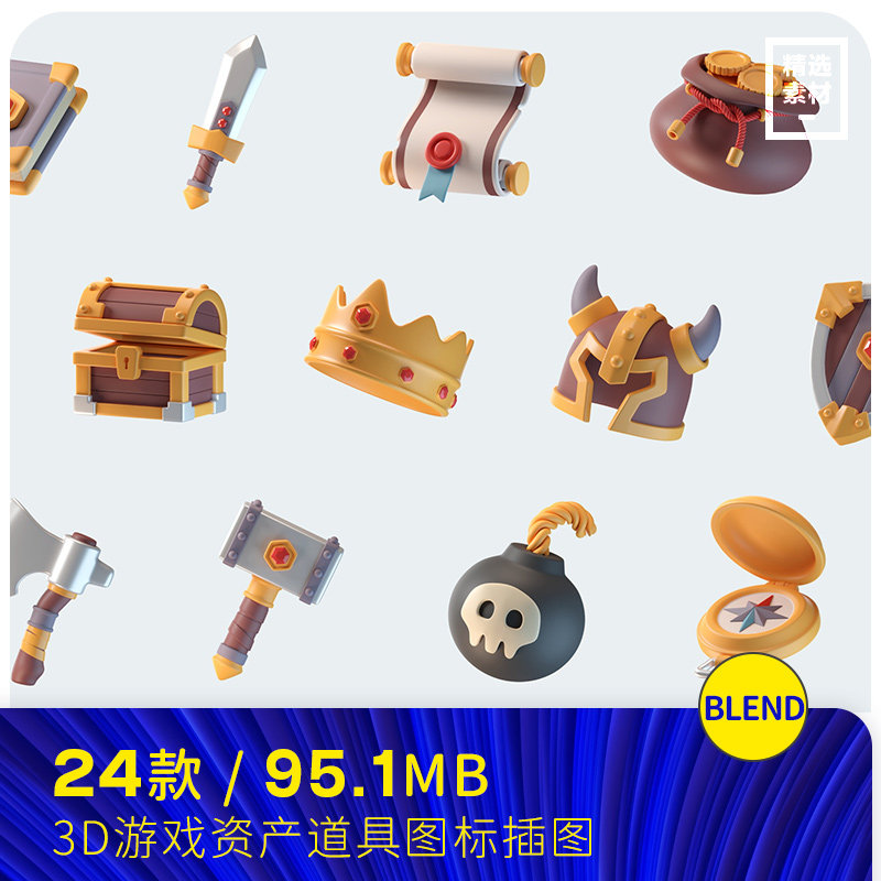 📚 3D立体卡通游戏资产道具宝物图标插图blender设计素材模型2490401