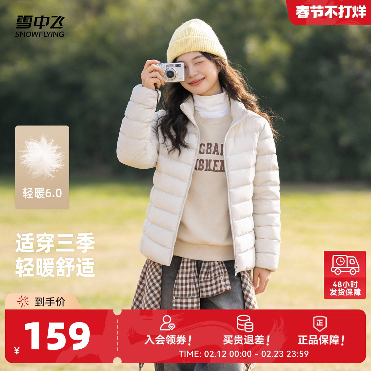 📚 雪中飞26春装新款女立领短款轻薄羽绒服排骨羽绒休闲通勤居家S