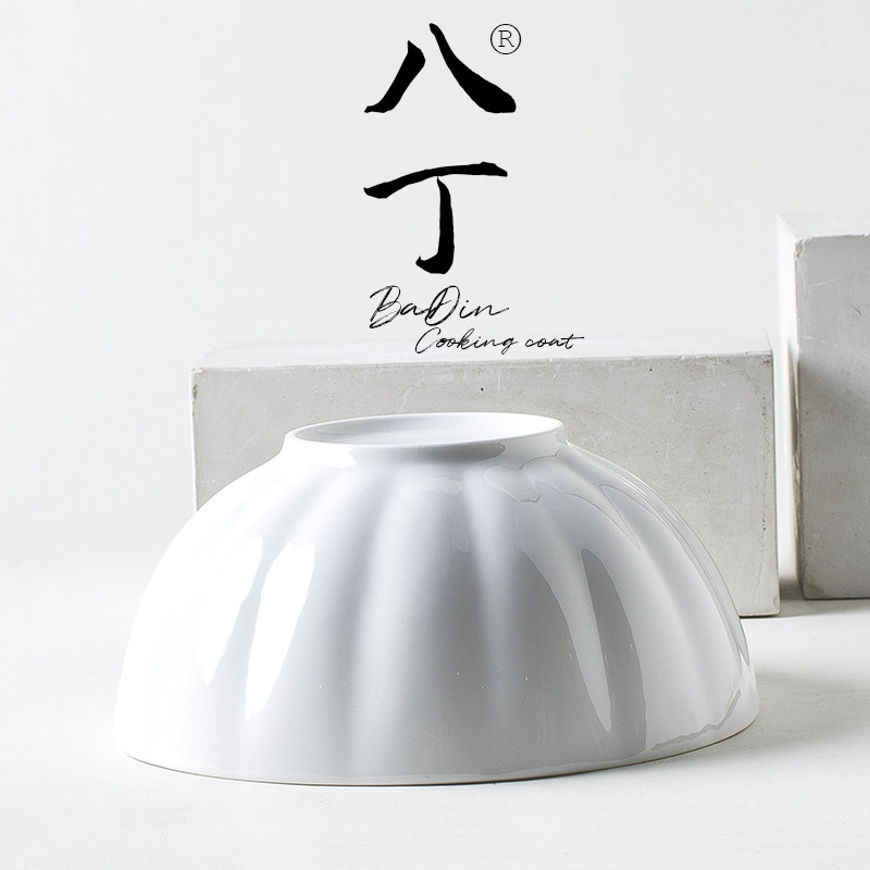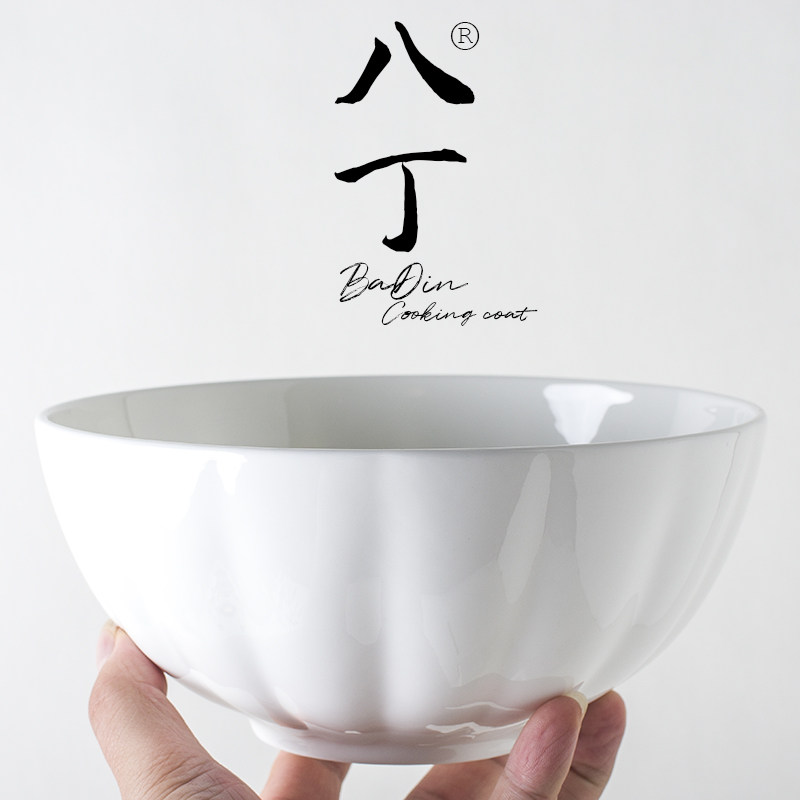 📚 北欧简约纯白骨瓷8英寸南瓜排骨汤碗料理水果蔬菜沙拉碗家用餐具