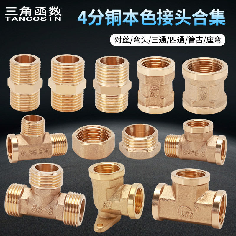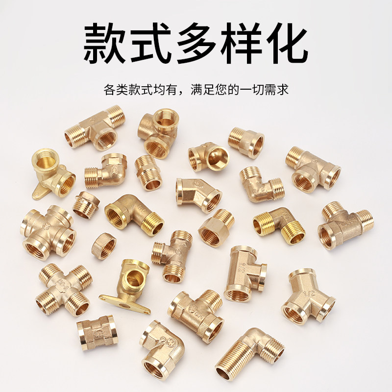 📚 4分铜三通弯头直接水管燃气太阳能配件内外丝活接头管古对丝四通