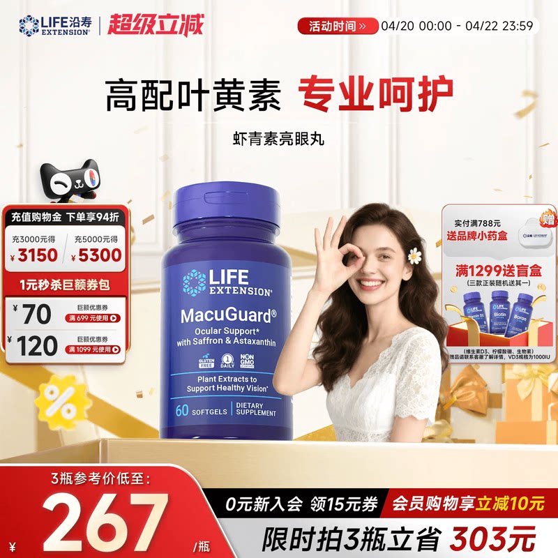 📚 沿寿LIFE叶黄素虾青素亮眼丸成人视网膜双眼睛无神干涩胶囊保健品