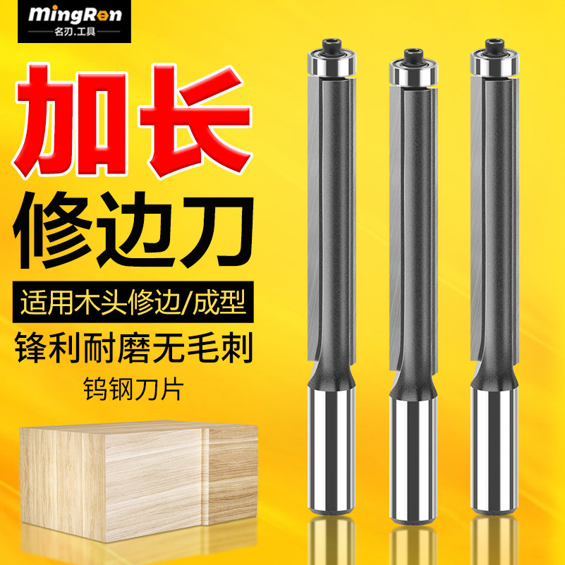 📚 名刃带轴承加长修边刀双刃直刀木工铣刀修边机刀头锣机雕刻机刀具