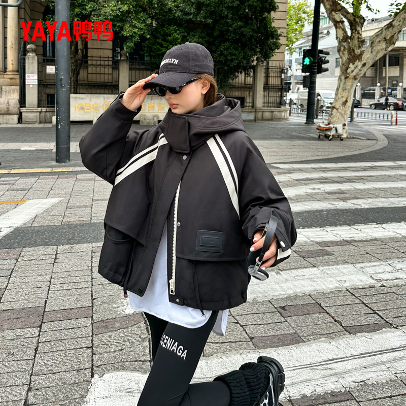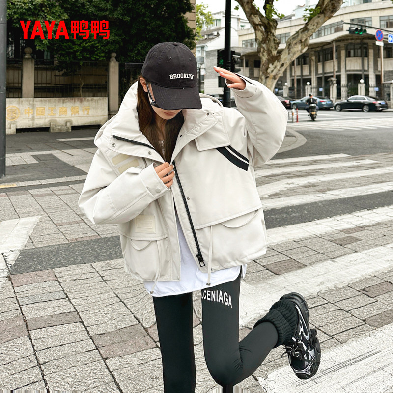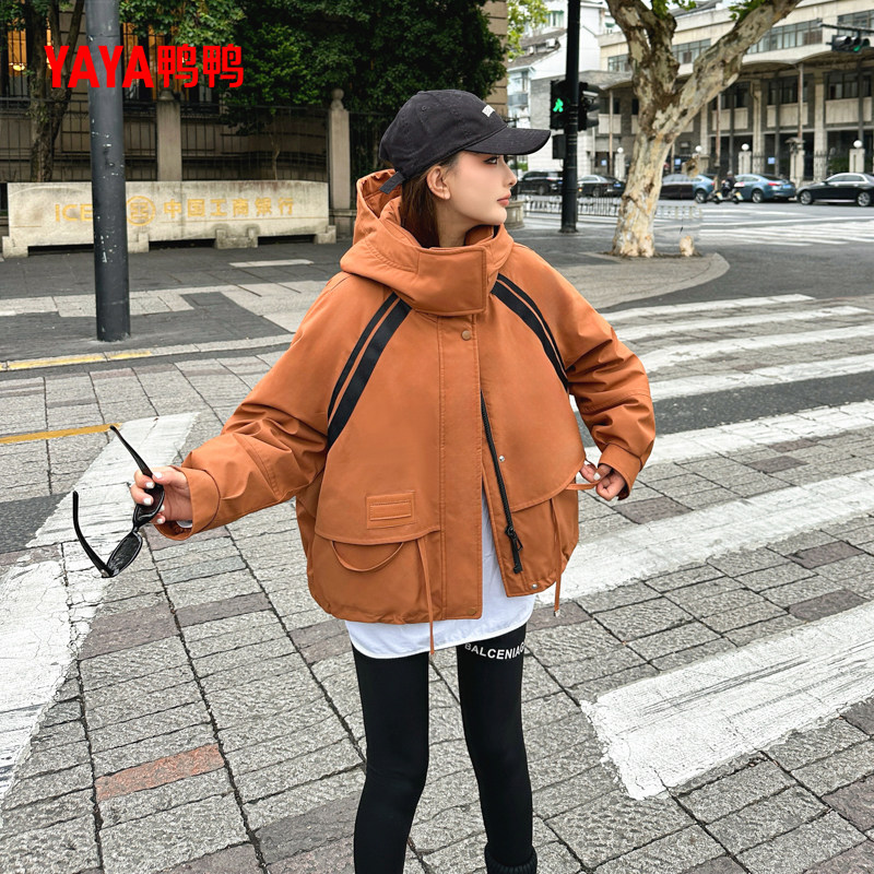 📚 鸭鸭YAYA羽绒服女款冬季2025新款短款宽松连帽设计感户外三防外套