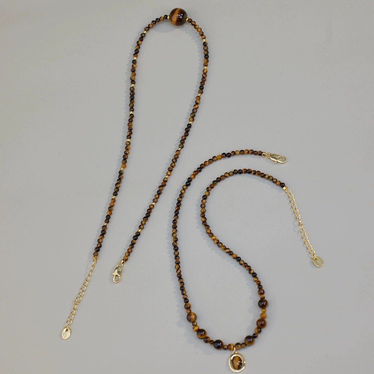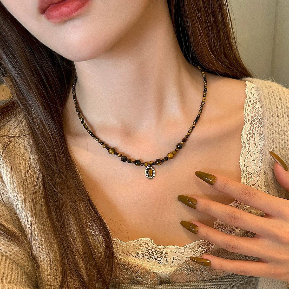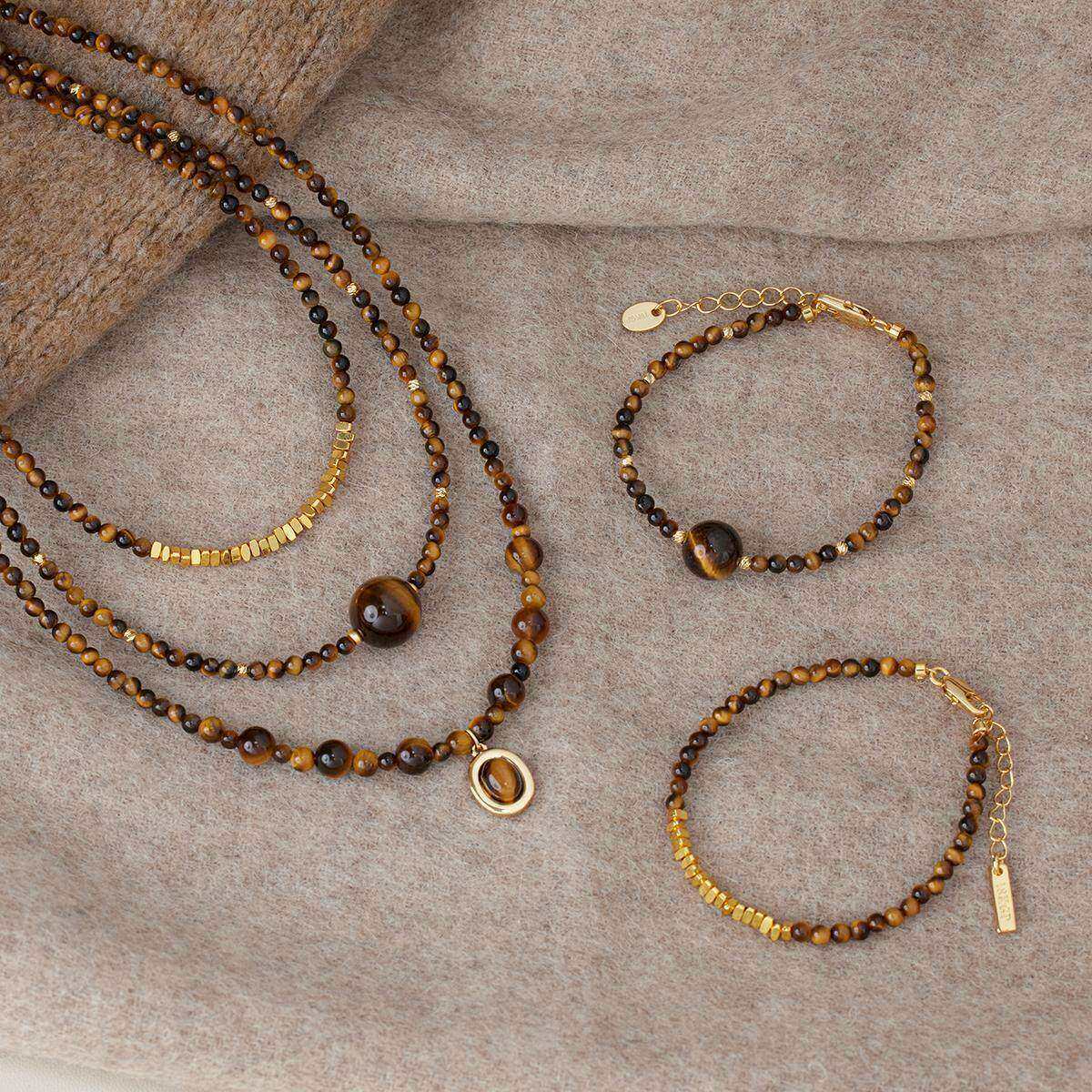 📚 赛赛莉安虎眼石美拉德项链手链套装碎金子小众复古咖色水晶串珠女