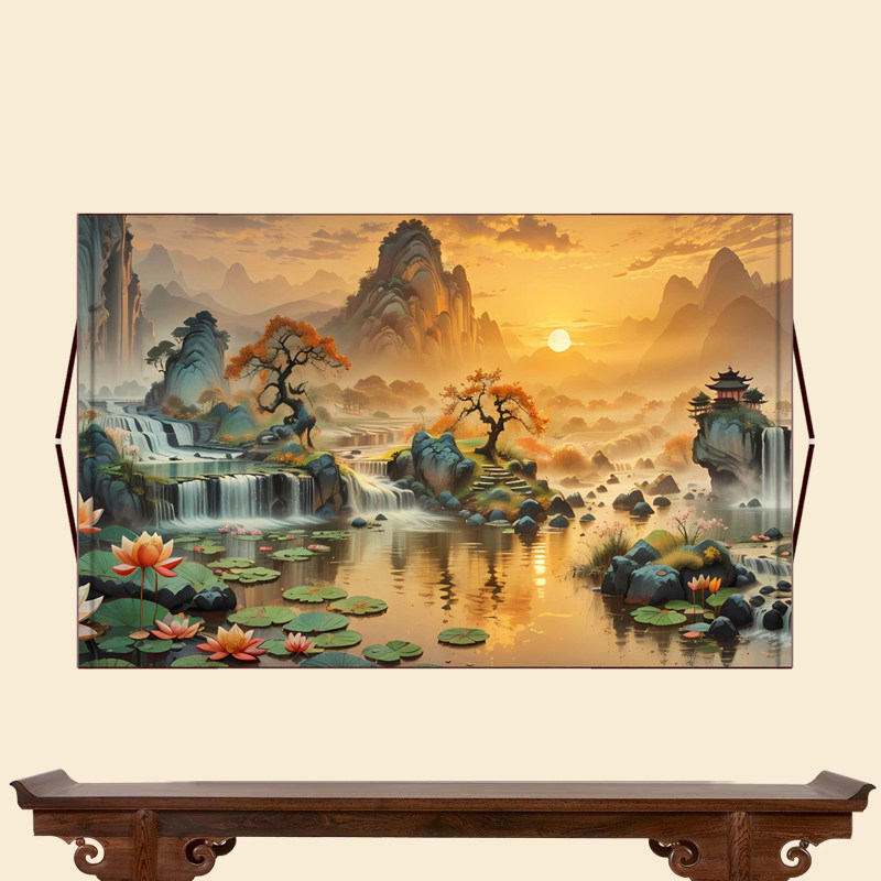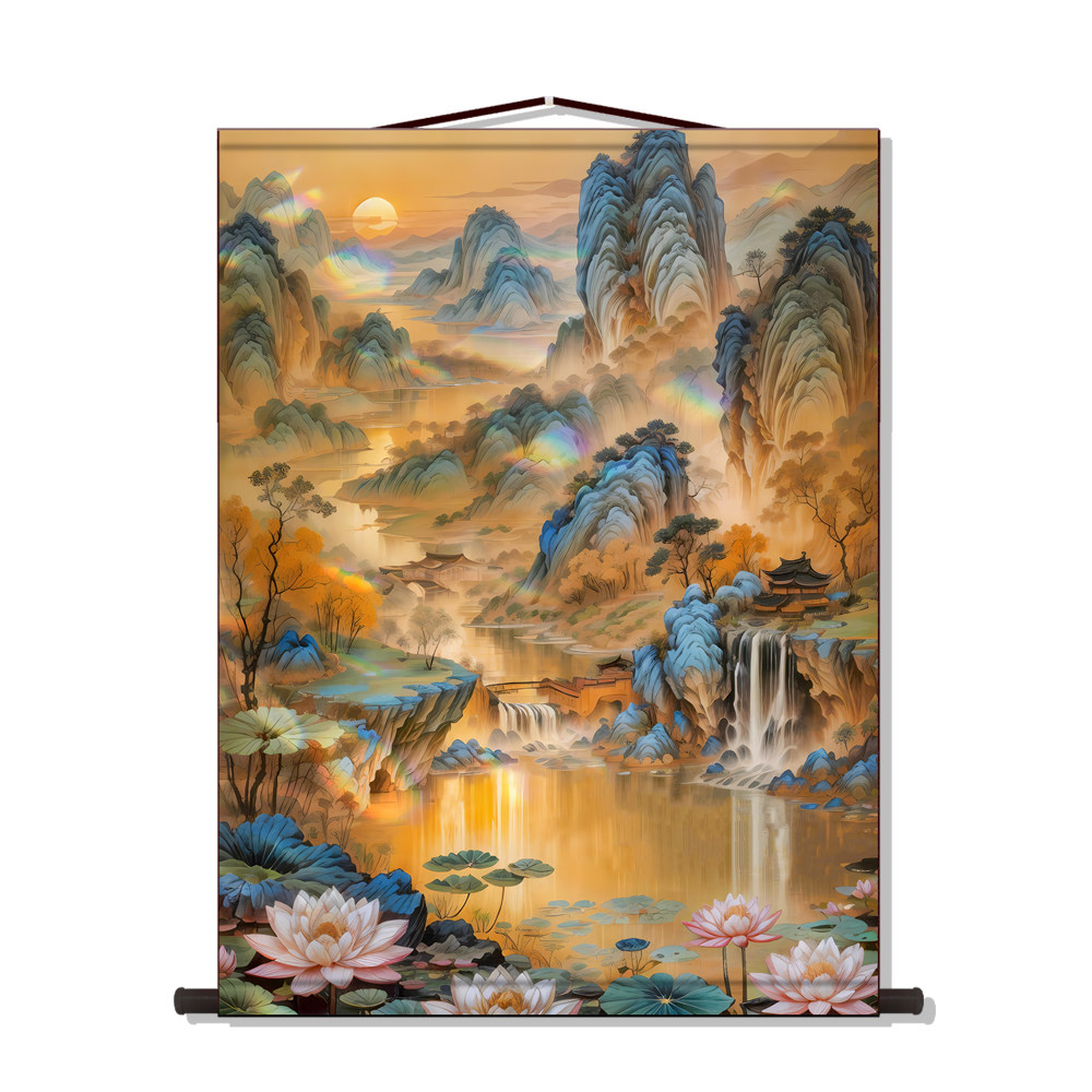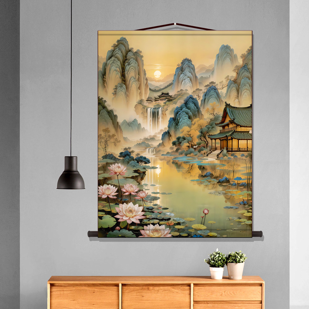📚 仙家堂口客厅山水画仙堂背景东北堂屋供奉风水画风景画丝绸挂画轴