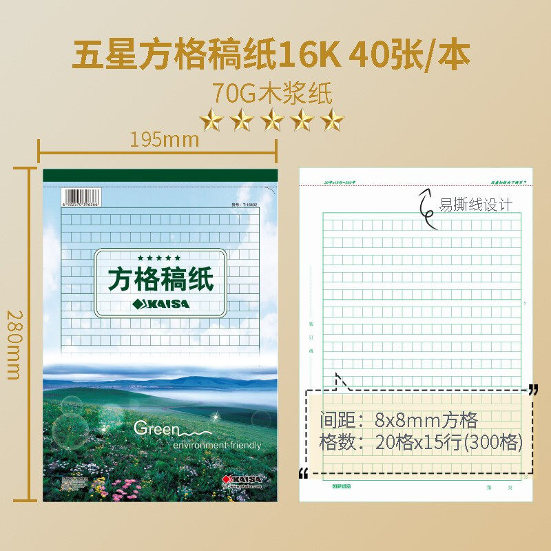 📚 凯萨方格稿纸信纸16k带皮作文本文稿纸300格400格学生汇报原稿纸语文稿纸双线信纸