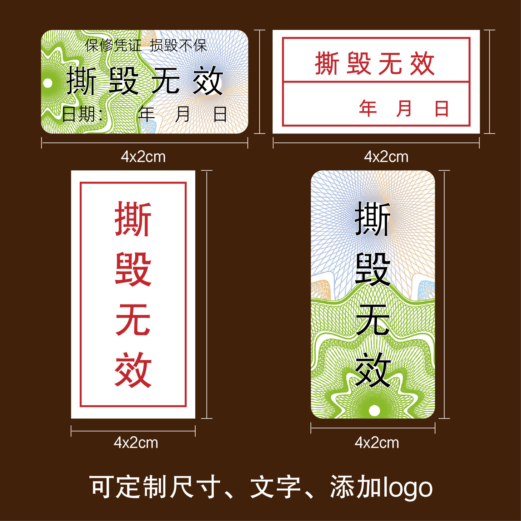 📚 撕毁无效易碎标签贴纸防伪防拆损毁不保保修凭证封口贴不干胶定制