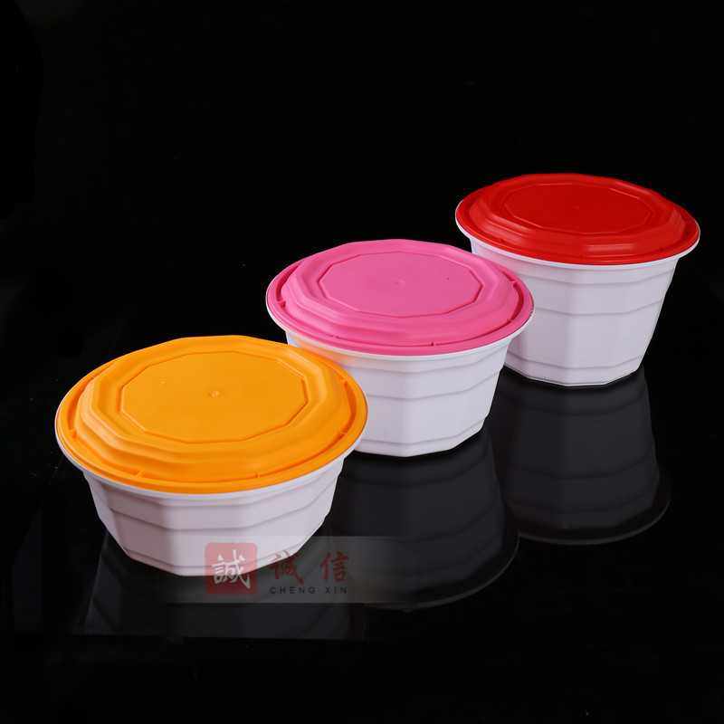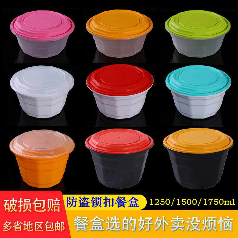 📚 OQ5M一次性加厚1250/1500/1750塑料防盗锁扣餐盒圆形外卖打包碗