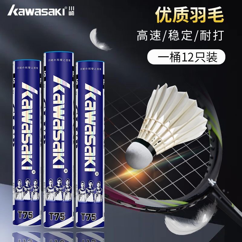 📚 kawasaki川崎羽毛球旗舰店正品耐打训练T75鸭毛专业比赛P65鹅毛