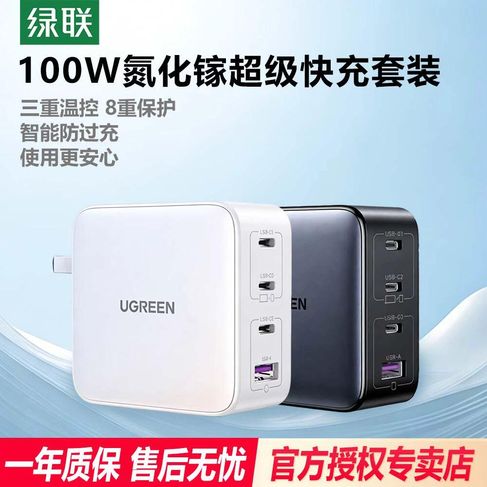 📚 绿联100W氮化镓充电器头多口PD快充头适用苹果小米17pro华为Macbookair笔记本电脑手机Type-C四口65W充电插头
