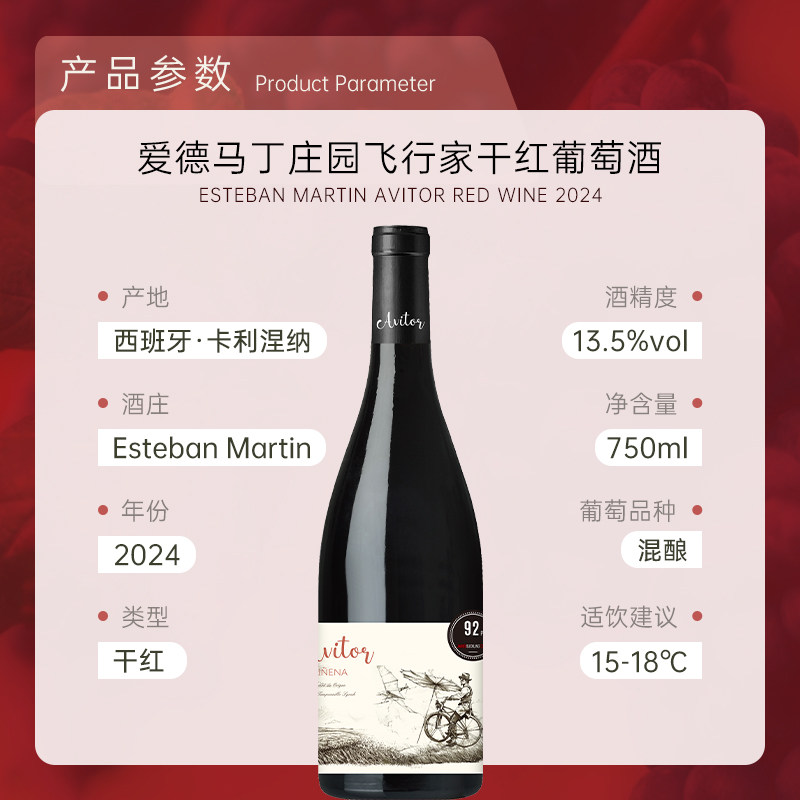 📚 JS92分尖货口粮 西班牙爱德马丁庄园飞行家歌海娜西拉干红葡萄酒