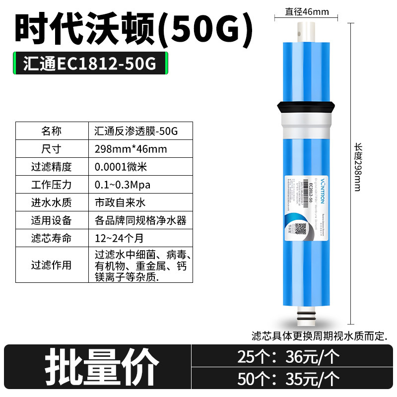 📚 原装正品汇通膜75G时代沃顿汇通RO膜EC1812-75净水器反渗透滤芯