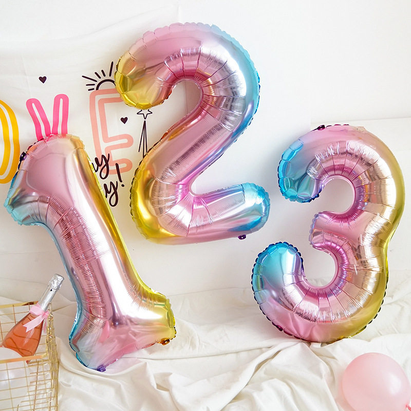 📚 果冻色数字气球16寸彩虹渐变色数字气球儿童生日派对拍照道具装饰