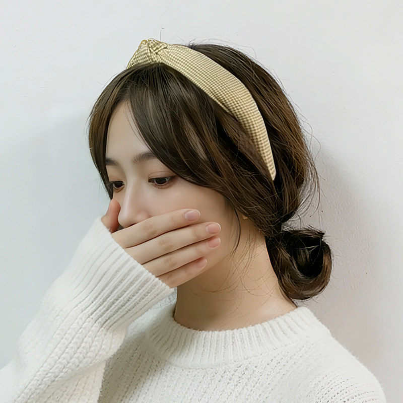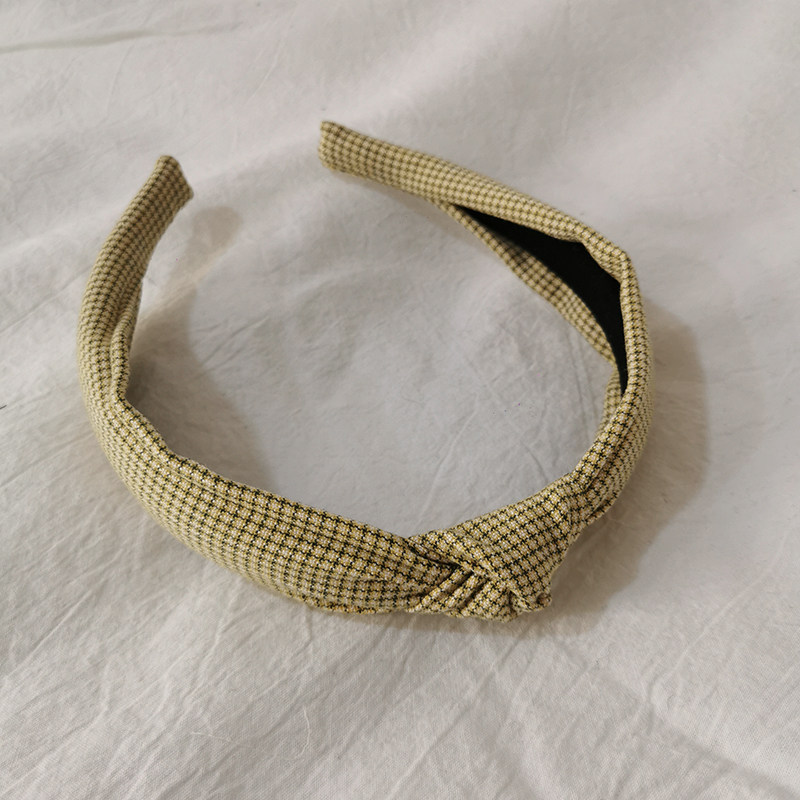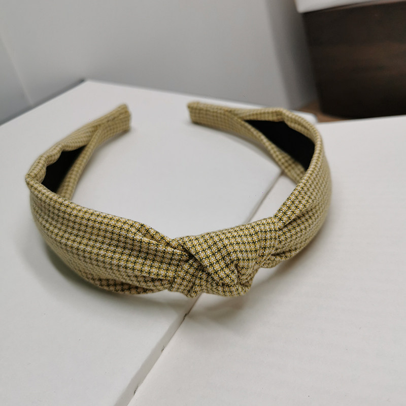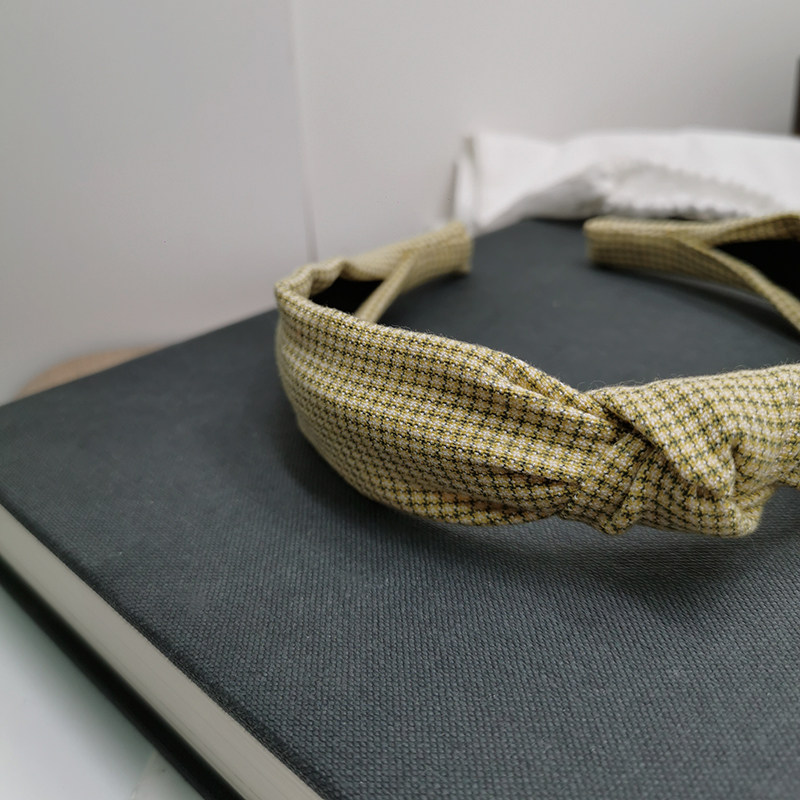 📚 法式复古发箍女黄色格子布艺打结头箍时尚显白压发发卡头箍发饰