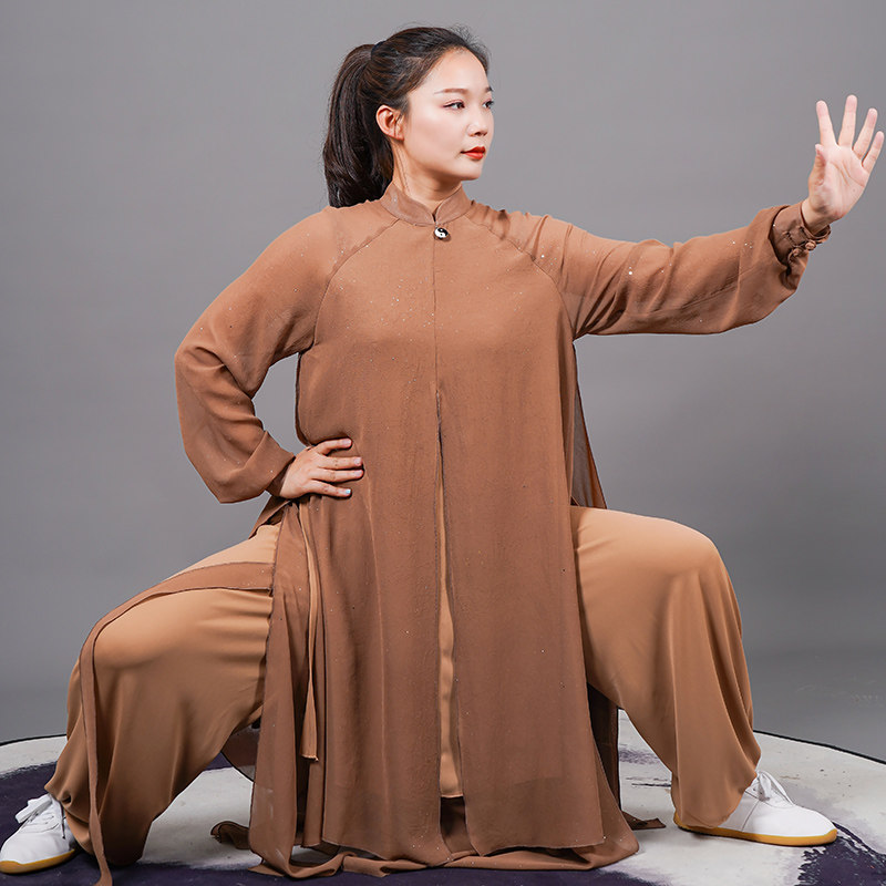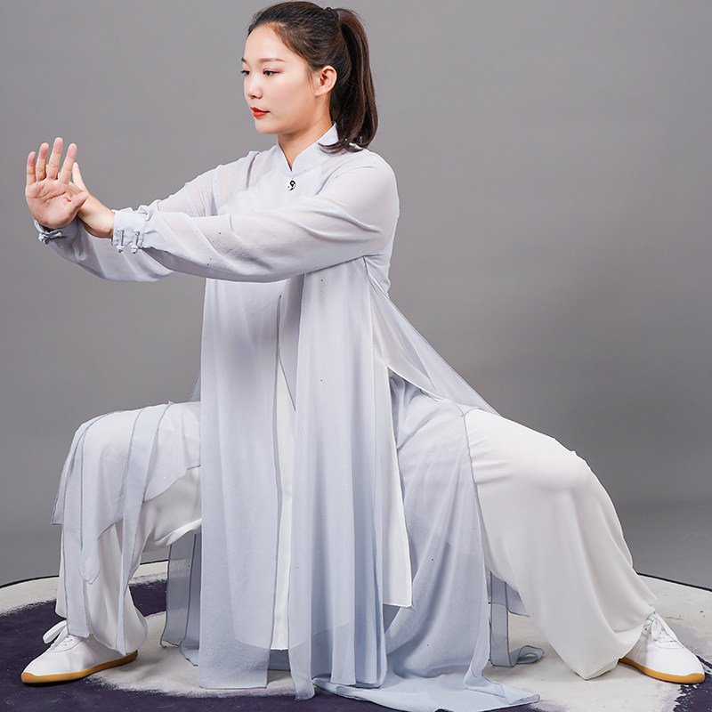 📚 马蕾太极女式新款夏季太极服武术服晨练表演服洒银中国风太极飘武