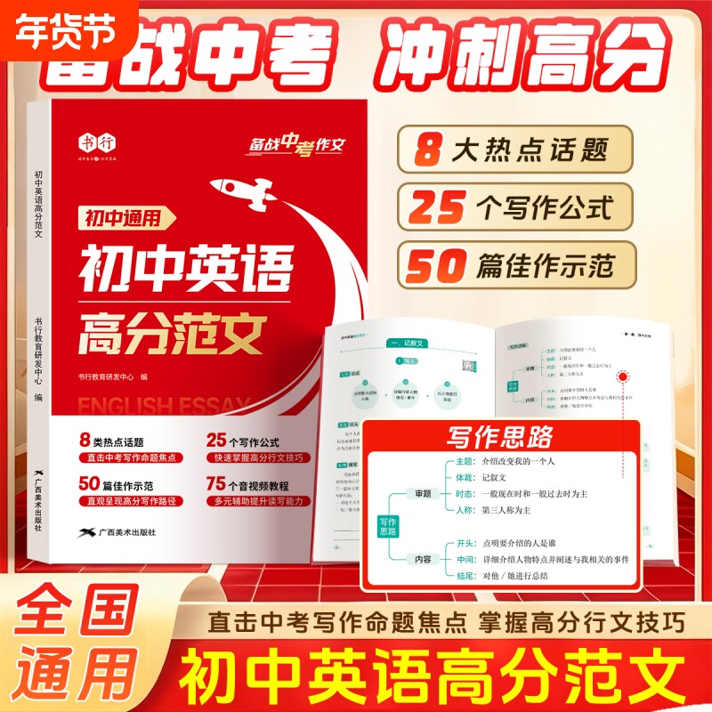 📚 2026新版书行初中英语高分范文写作大全指导书七八九年级通用阅读理解作文教材中考备考热点素材满分审题技巧练习L公式示范高中