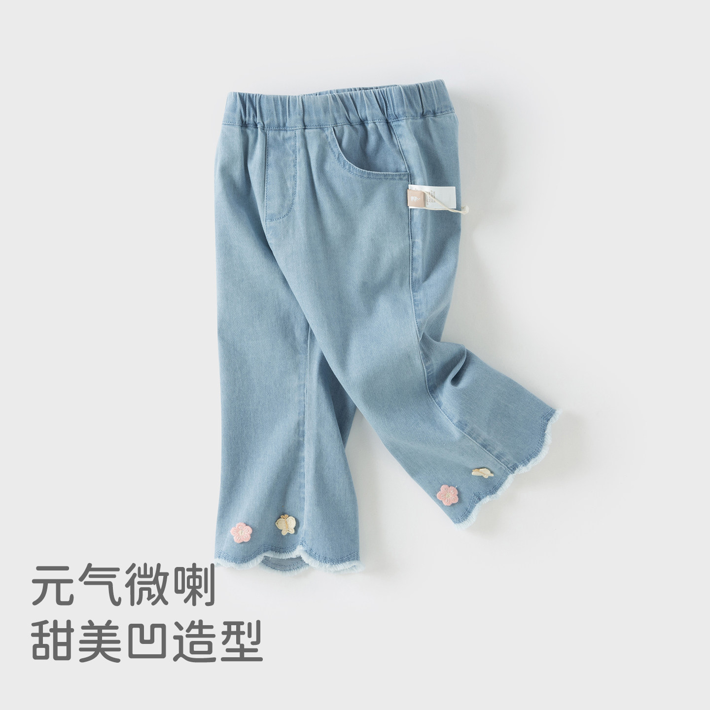 📚 戴维贝拉儿童牛仔裤春季女童喇叭裤新款九分裤宝宝微喇裤夏季裤子