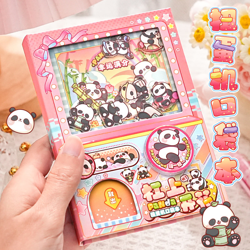 📚 可爱卡通扭蛋机口袋本熊猫笔记本迷你小本子抓娃娃机本创意封面机关趣味解压手账女生手帐本加厚小学生日记本