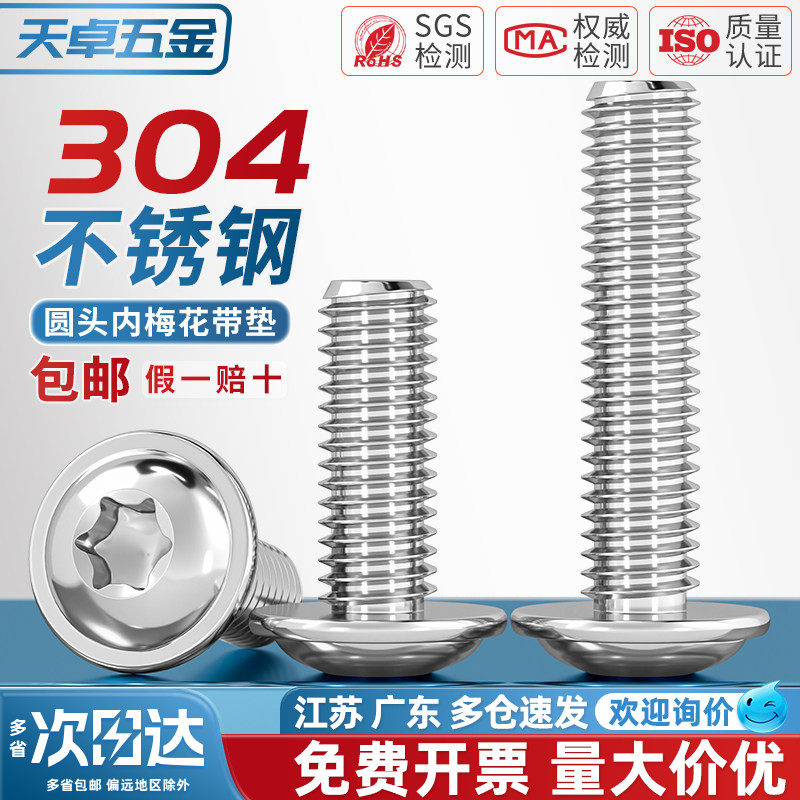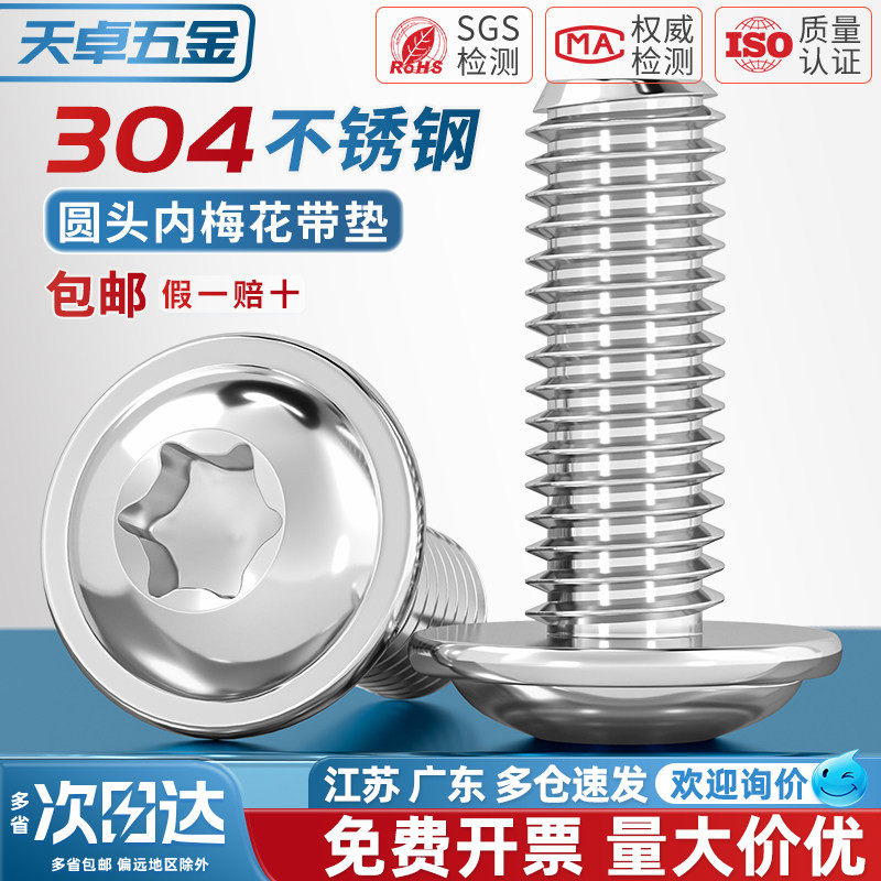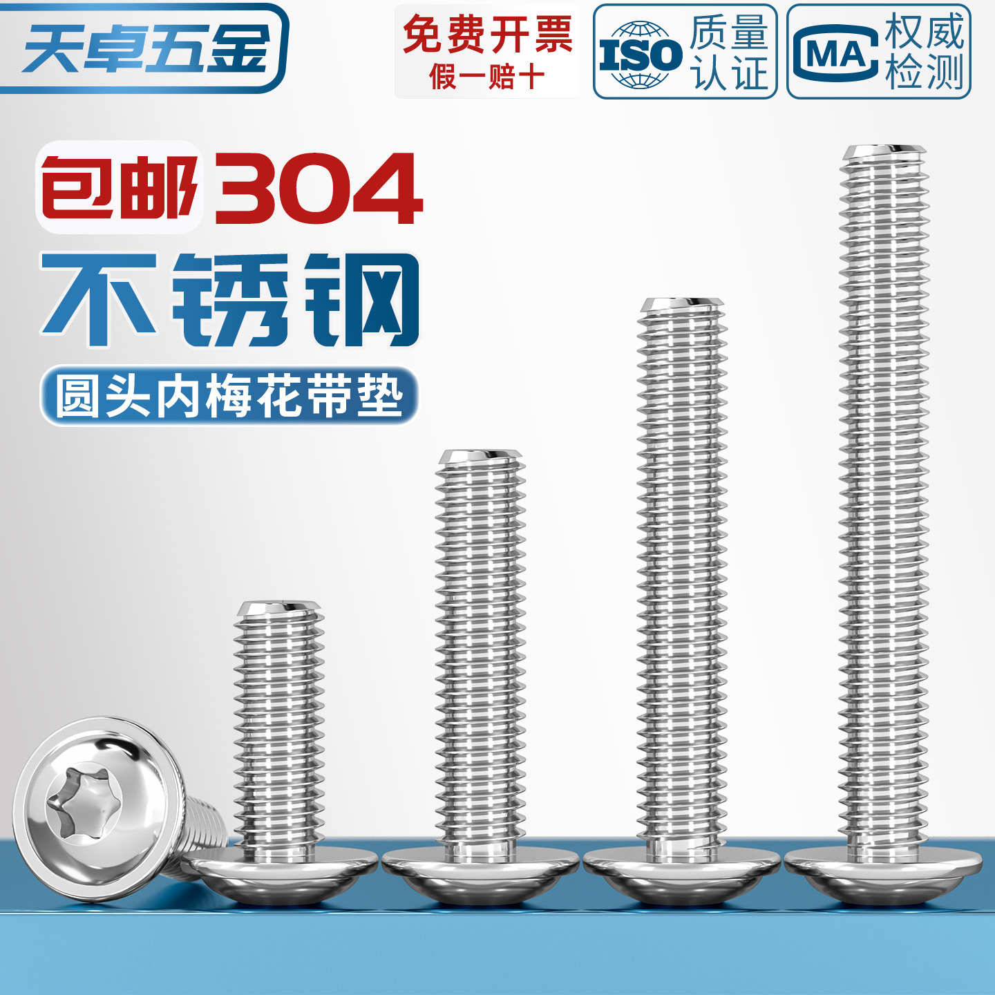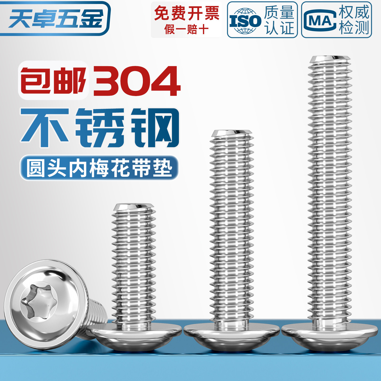 📚 304不锈钢圆头带垫梅花螺丝带介防盗内六角梅花型螺栓M3M4M5M6M8
