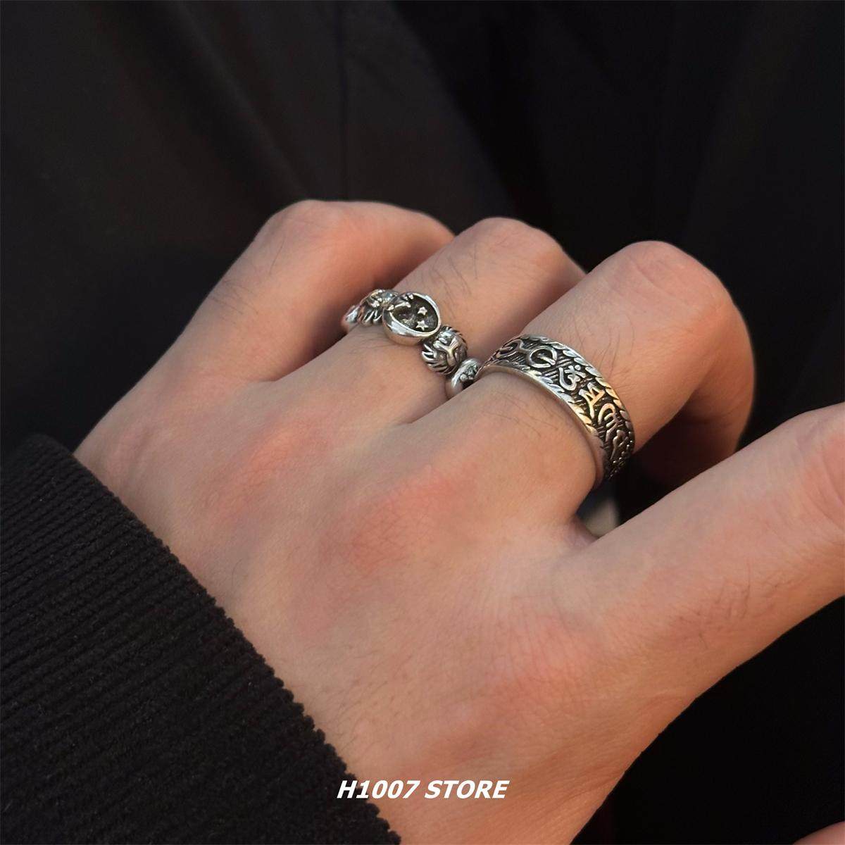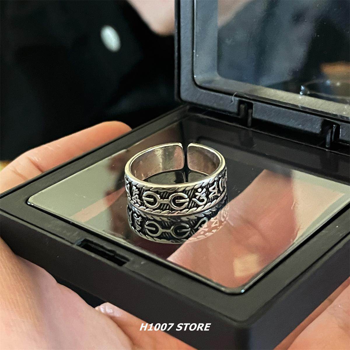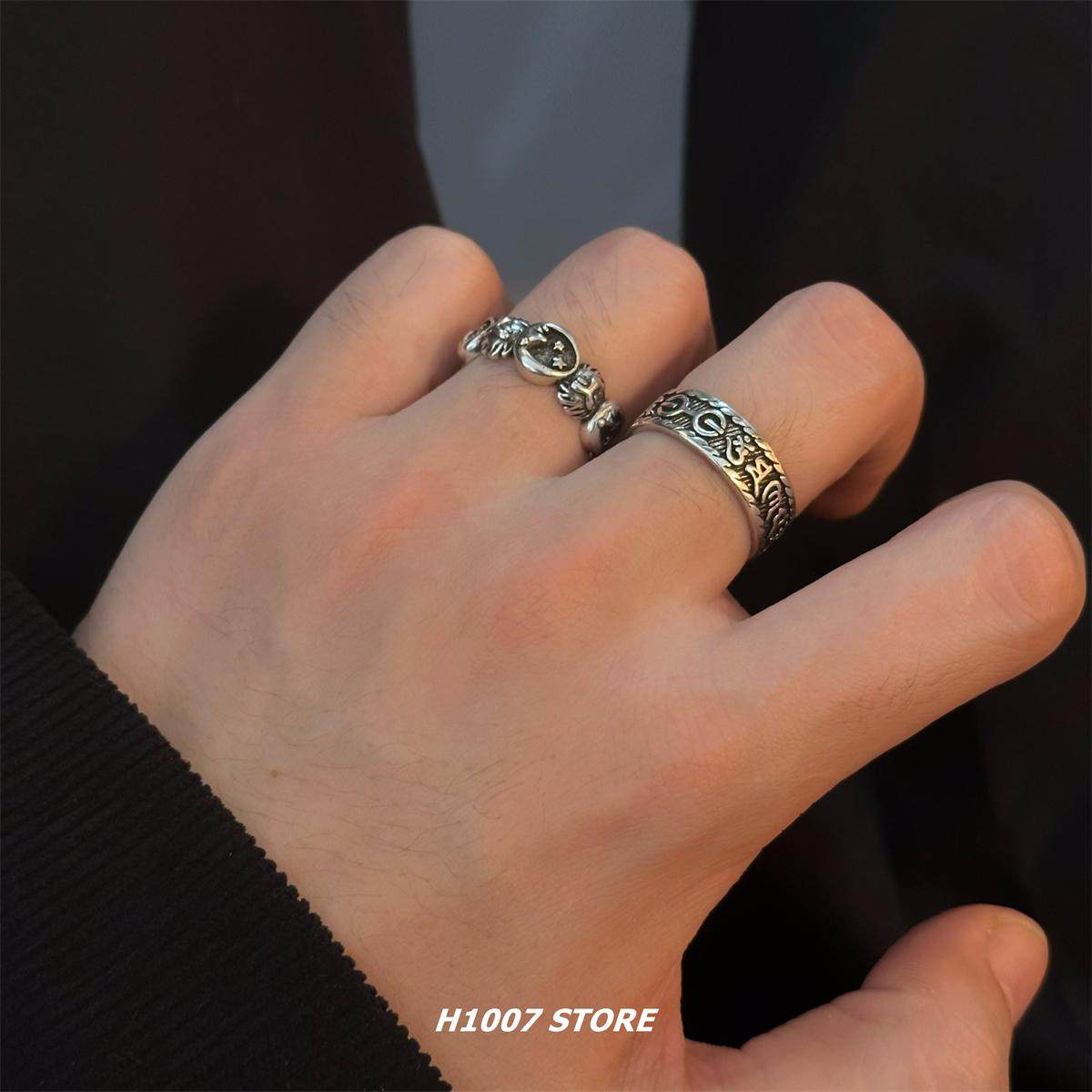 📚 H1007 欧美复古梵文戒指男款个性单身食指尾戒情侣款嘻哈ins指环